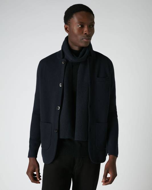Unisex Ribbed Cashmere Scarf In Navy Blue