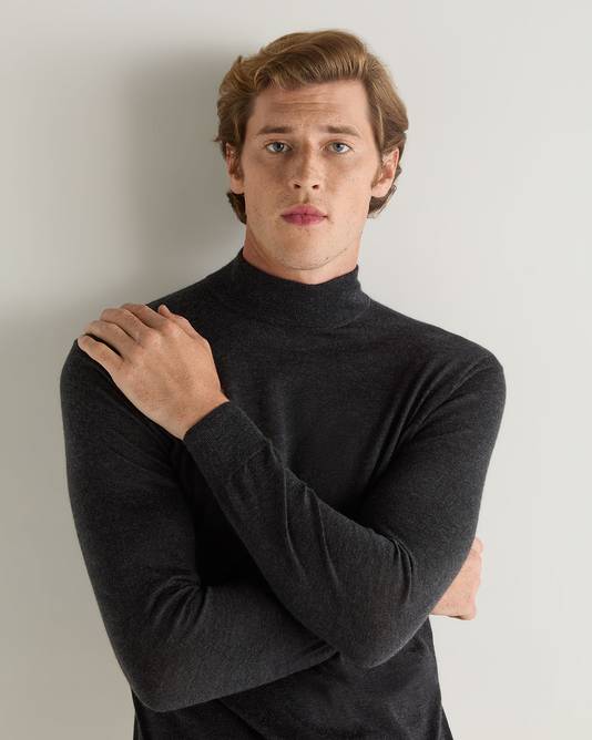 Men's Pimlico Fine Gauge Cashmere Roll Neck Jumper In Dark Charcoal Grey