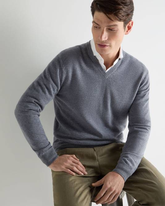 Men's Burlington V Neck Cashmere Jumper In Ash Grey