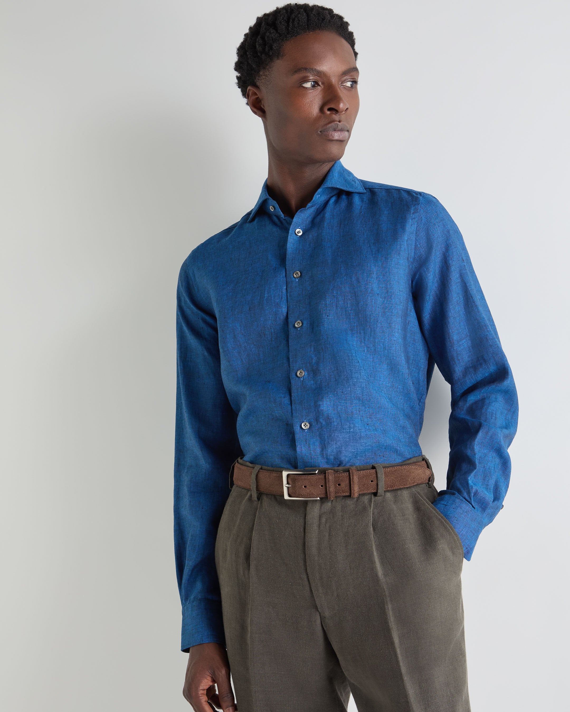 An effortless warm-weather essential, this linen shirt is designed to bring ease and refinement to summer dressing. Cleanly cut with a relaxed sensibility, it’s the kind of piece you’ll reach for on sunlit city days, coastal lunches or evenings that stretch long into the night.