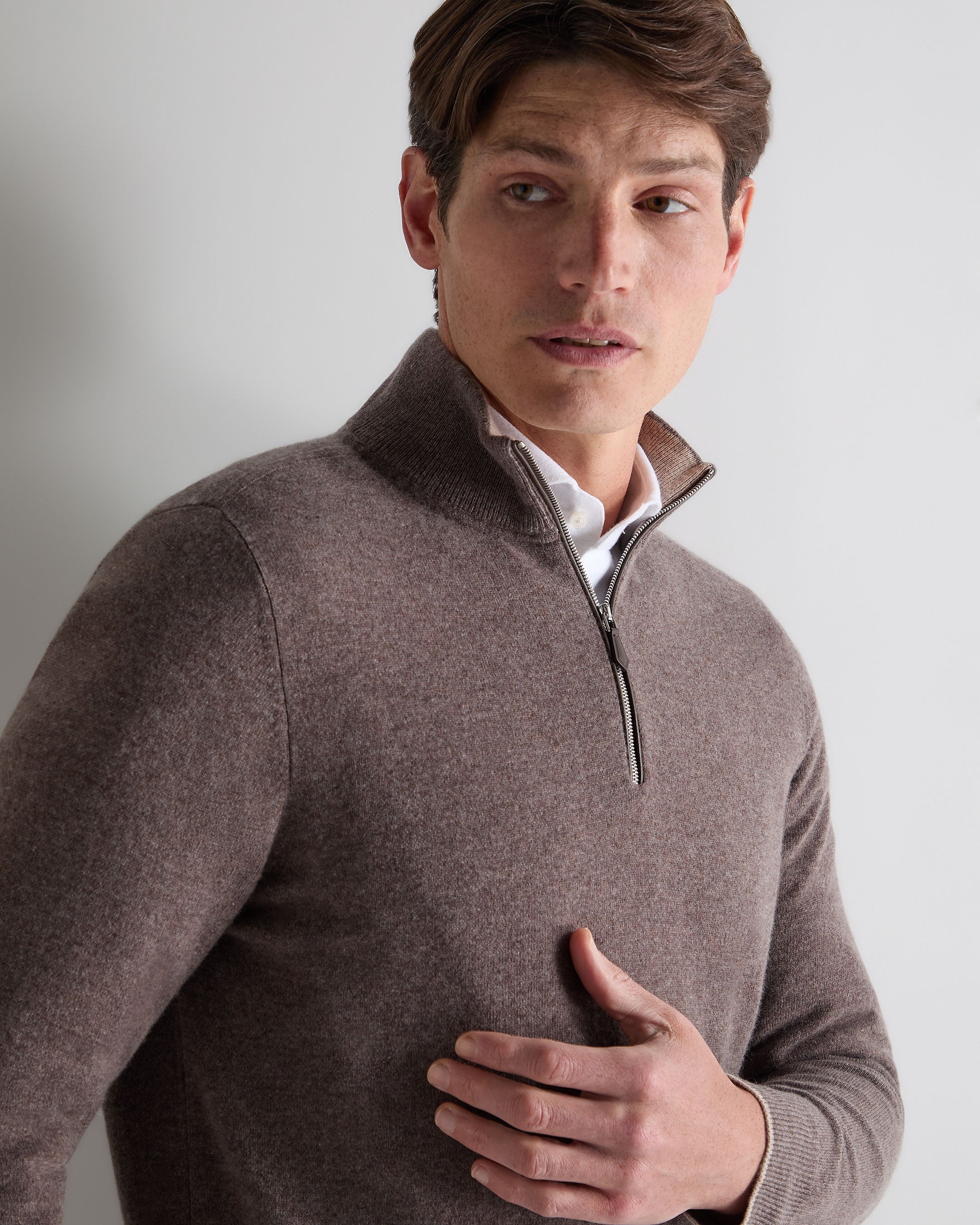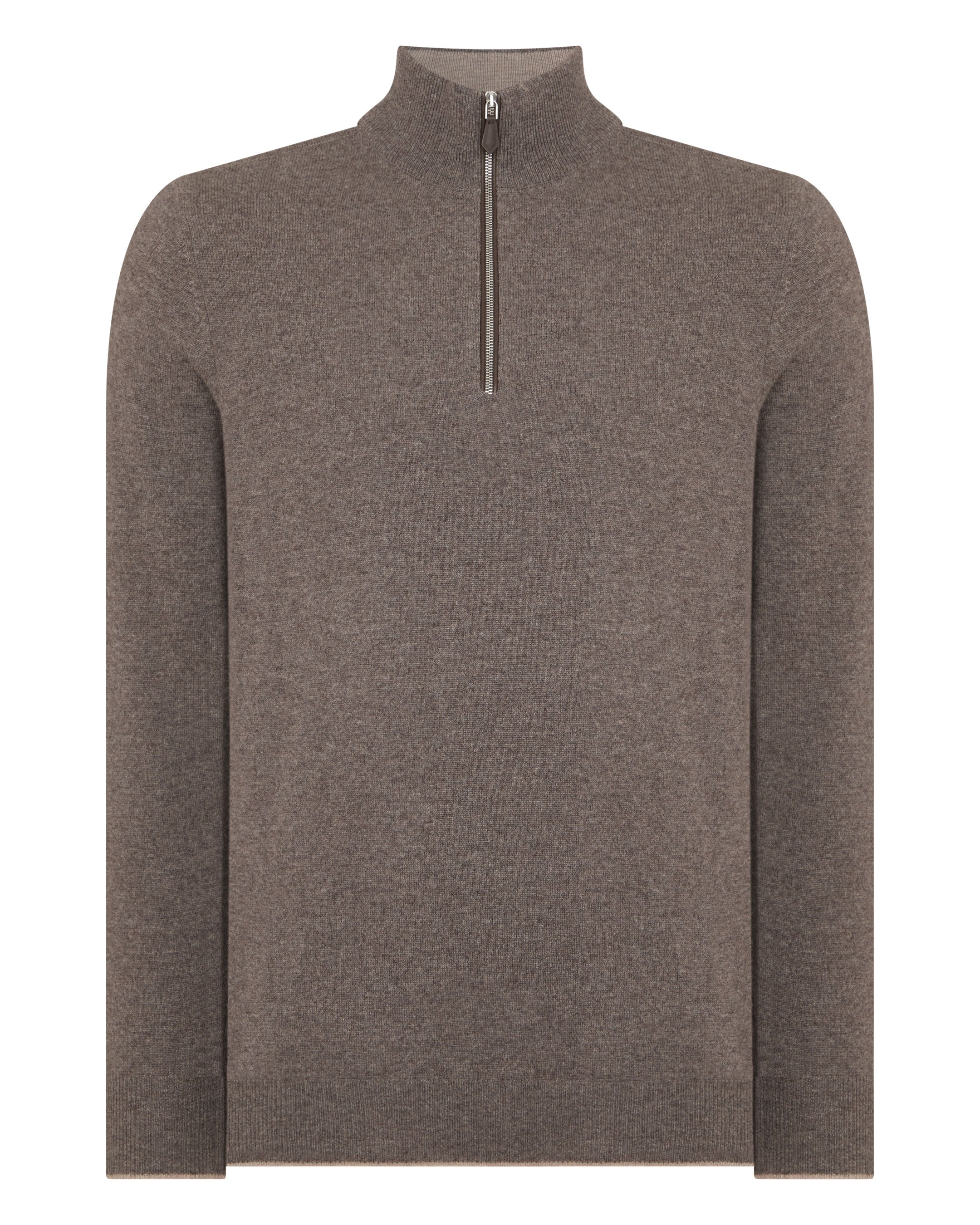 Men's Carnaby Half Zip Cashmere Jumper In Otter Brown