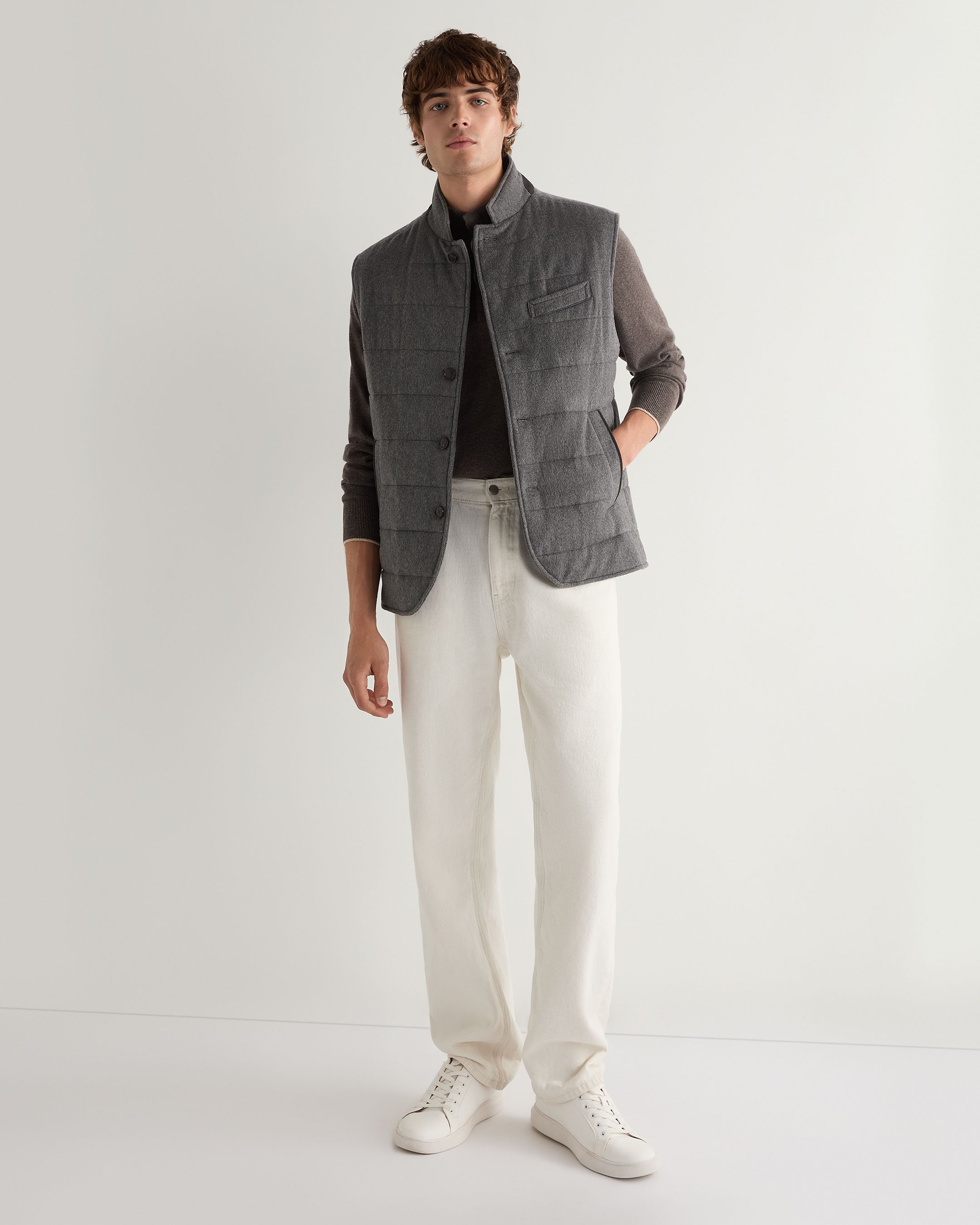 Easily layered over knits and light jackets our Calgary gilet is introduced in luxurious Italian cashmere. Expertly cut this exquisite piece is further enhanced with cotton cashmere lining and a lightweight down membrane. Imagined with our London Weather System™ treatment ensuring your sophistication doesn’t fade when showers come.