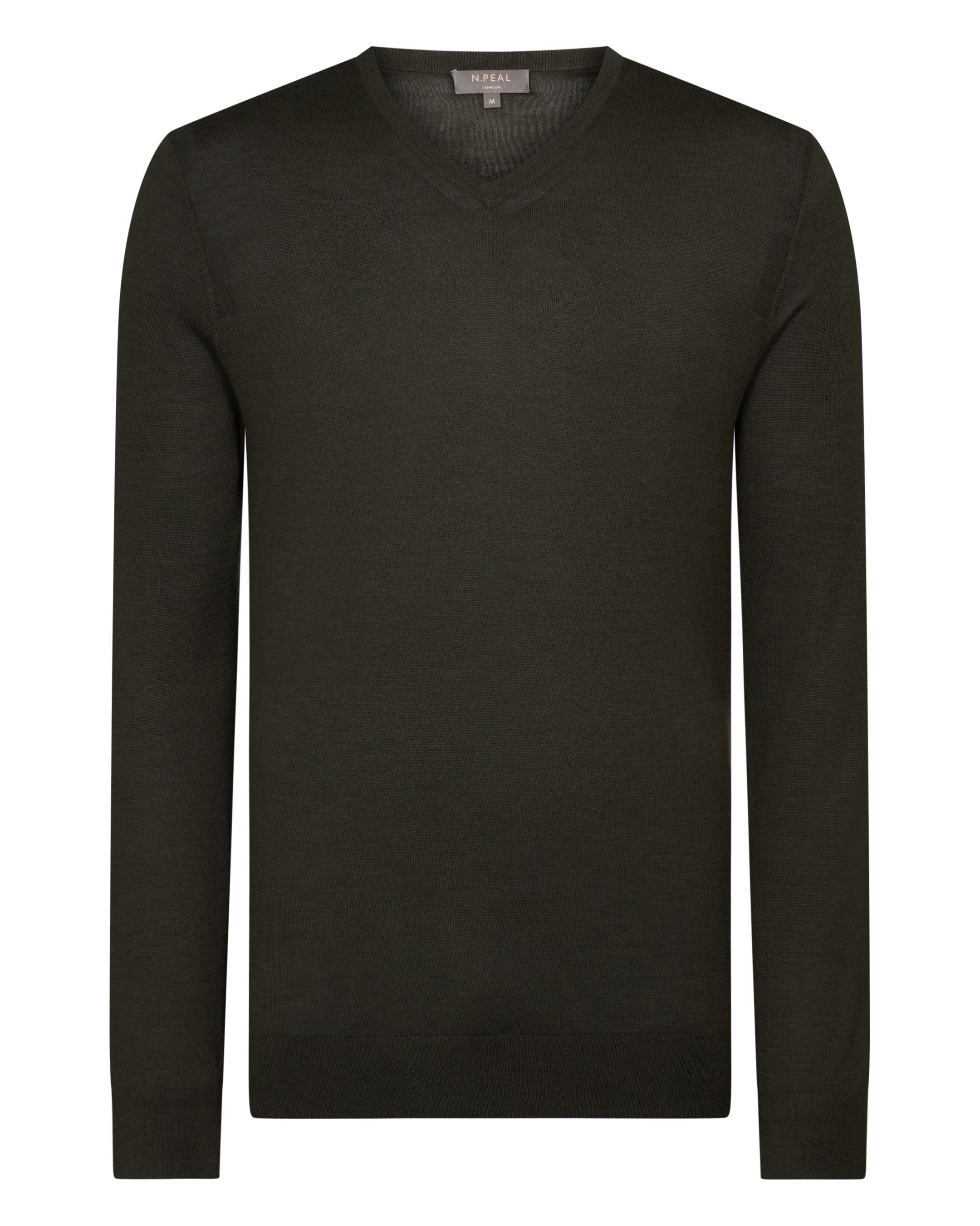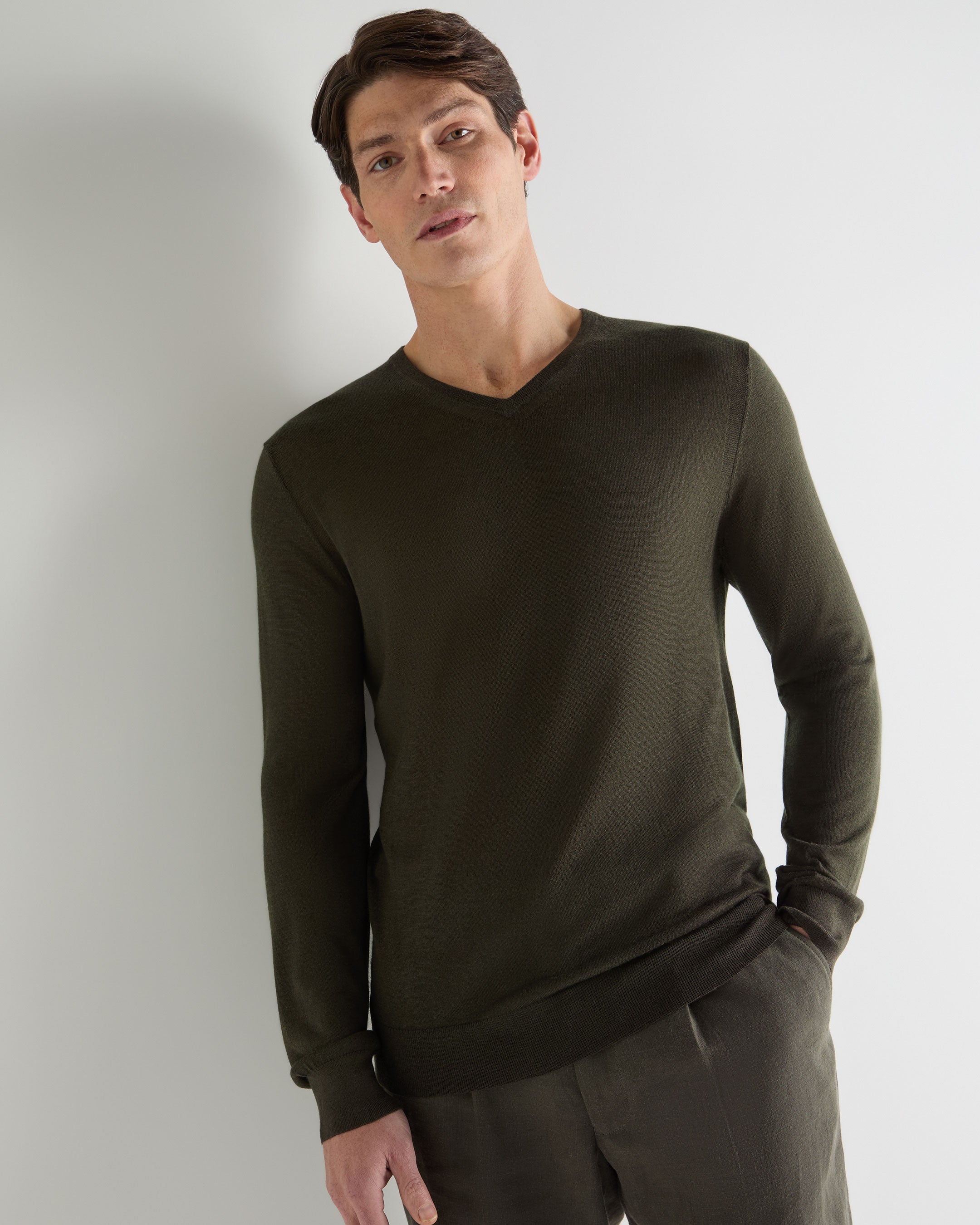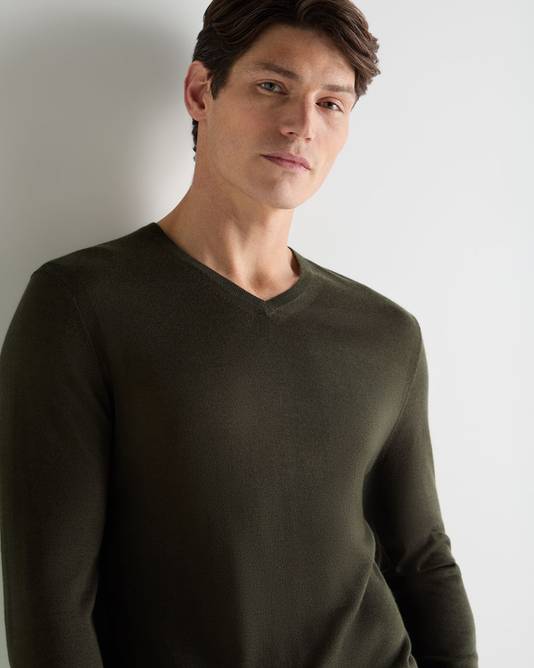 Men's Conduit Fine Gauge Cashmere V Neck Jumper In Arabica Khaki Green