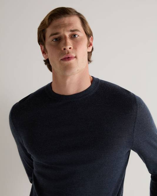 Men's Covent Fine Gauge Cashmere Round Neck Jumper In Indigo Blue