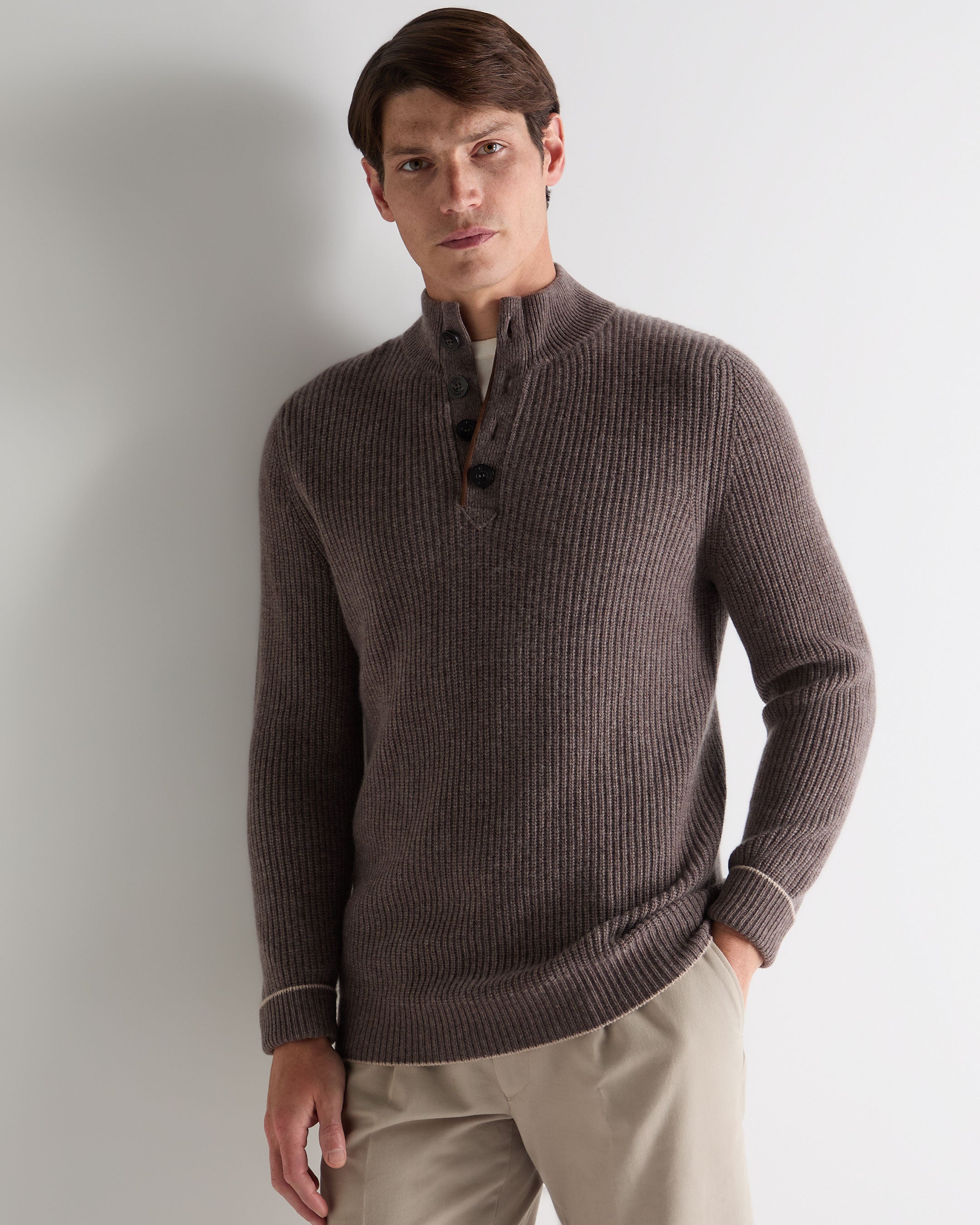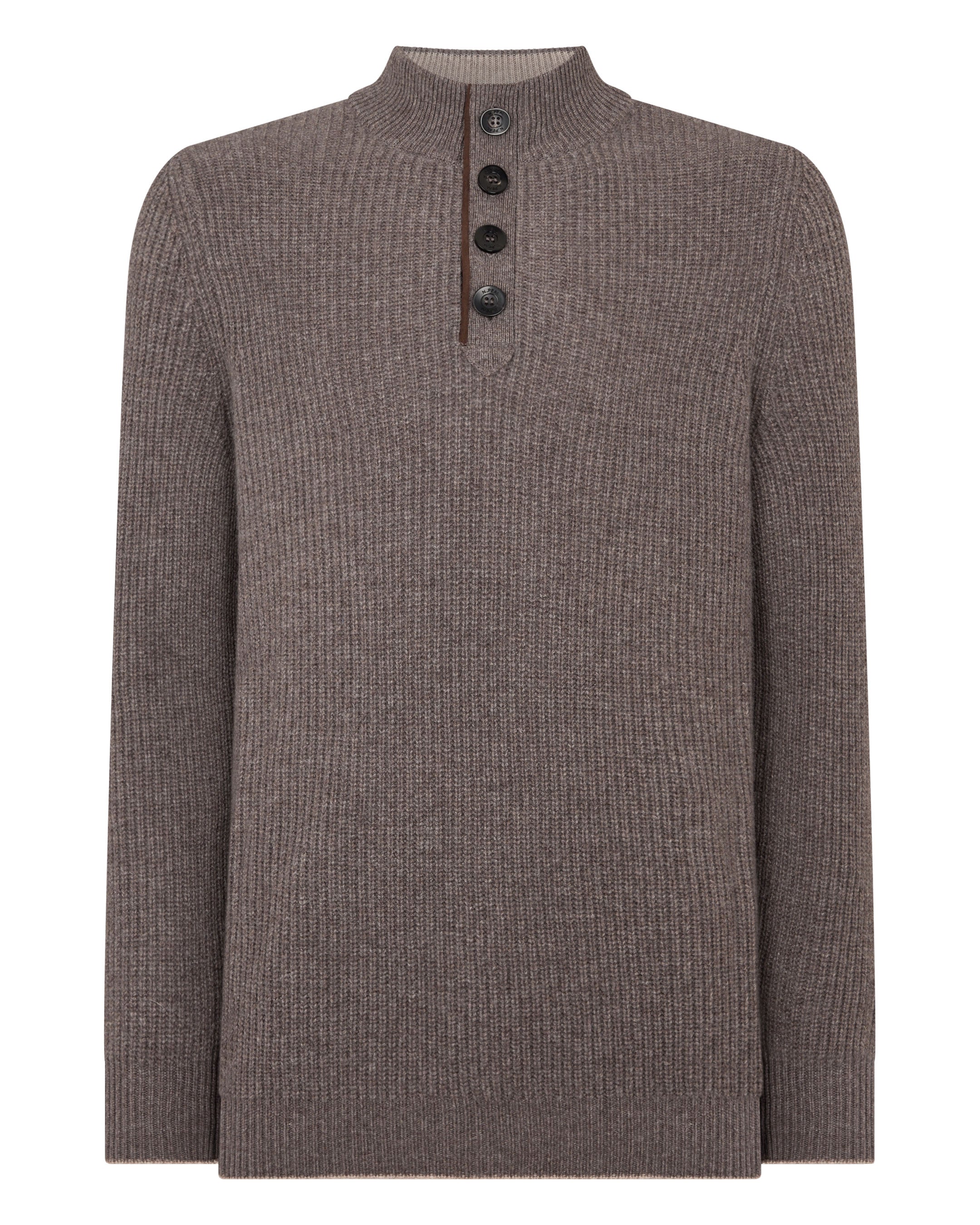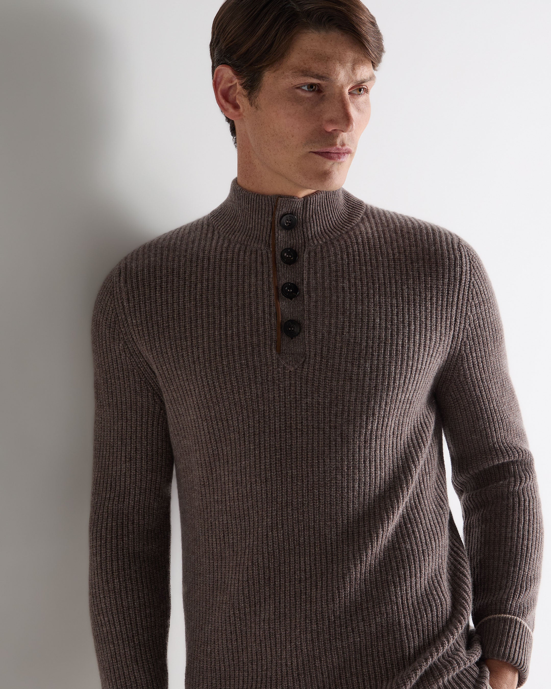 Men's Beauchamp Half Button Cashmere Jumper In Otter Brown