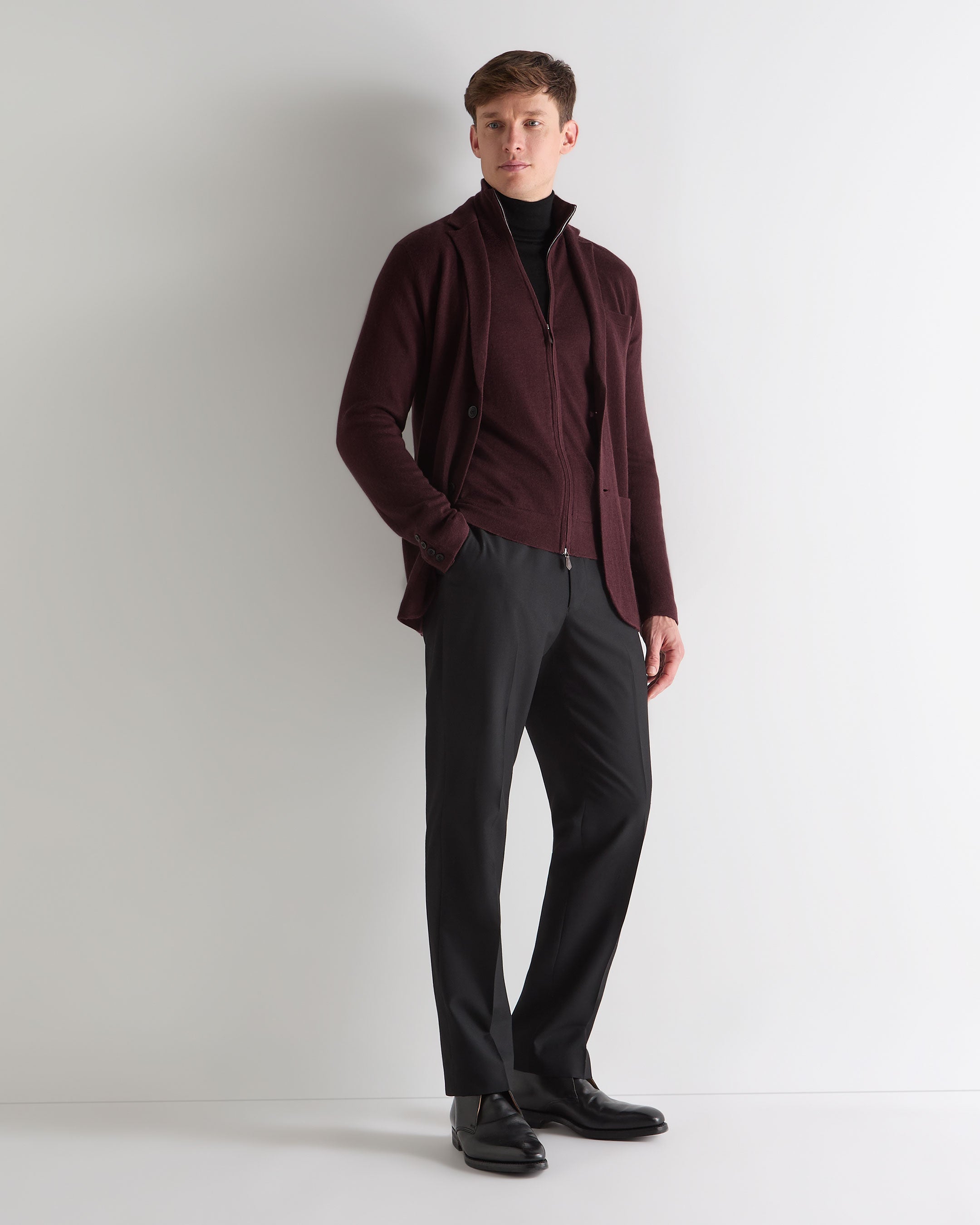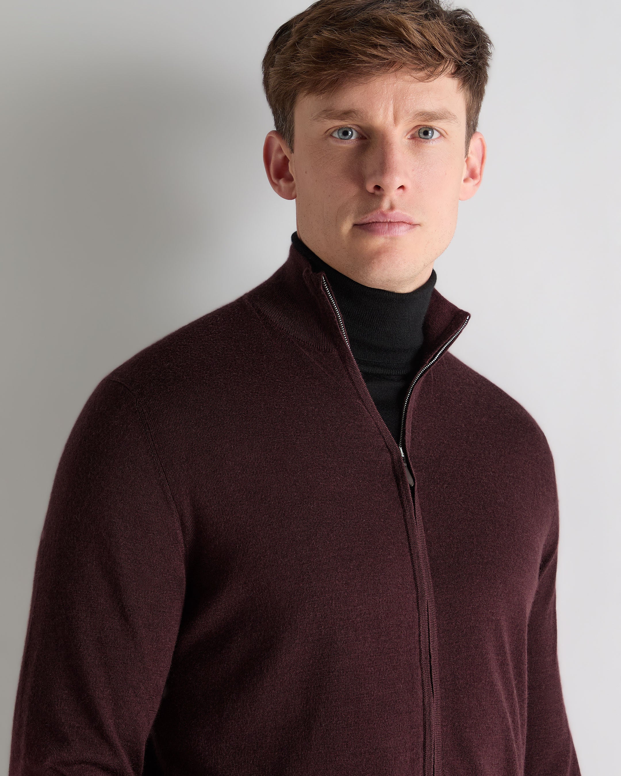 Men's Hyde Fine Gauge Cashmere Full Zip Jumper In Claret Red