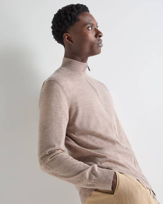 Men's Hyde Fine Gauge Cashmere Full Zip Jumper In Soft Taupe Brown
