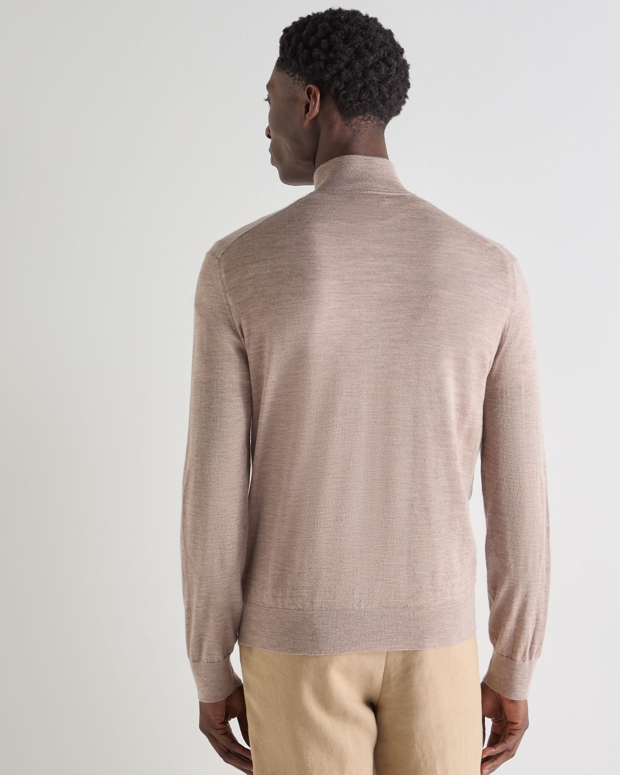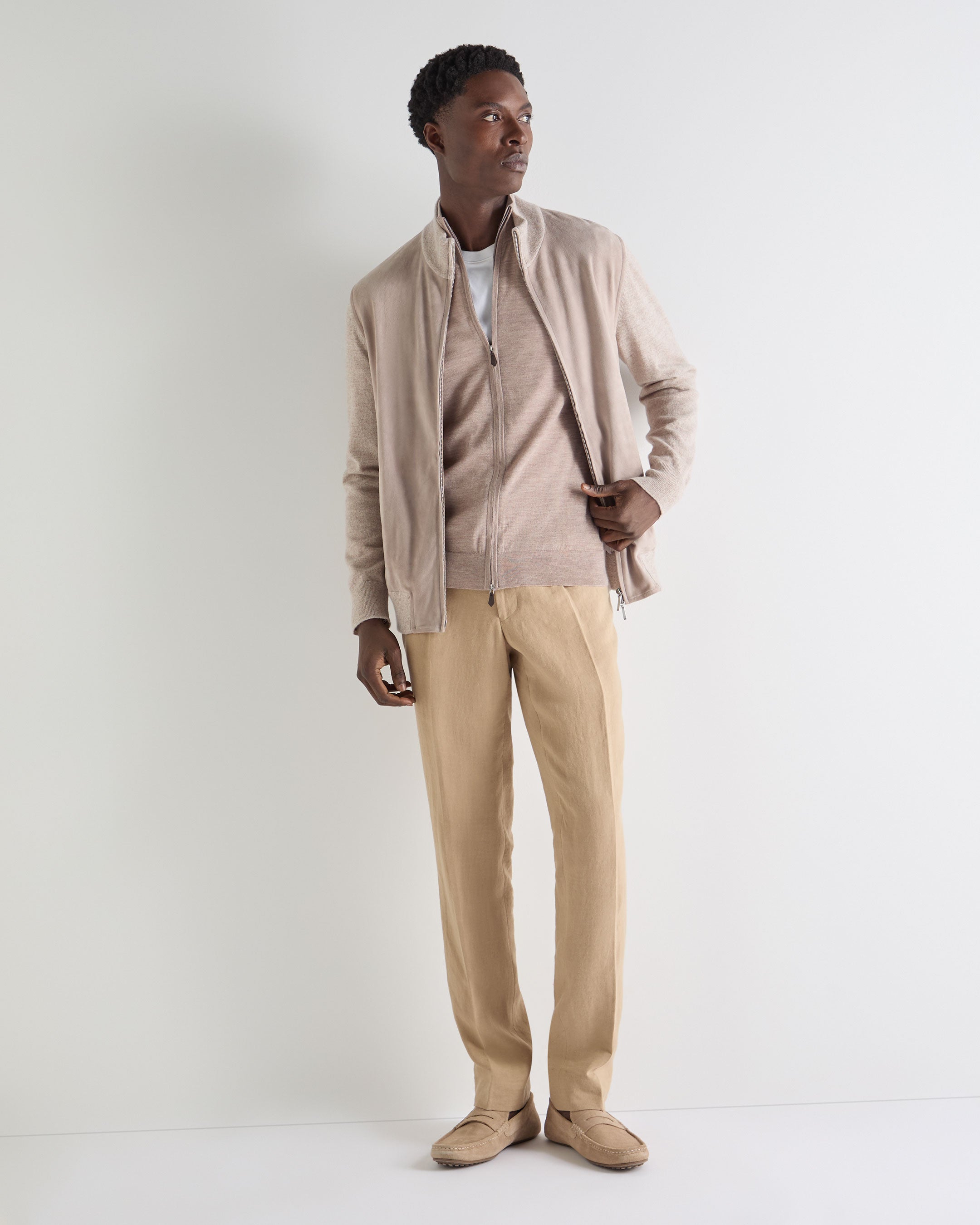 A masterclass in refined ease, this fine-gauge full-zip is the definition of versatile sophistication. Knitted from a luxurious blend of 70% cashmere and 30% silk, it delivers a smooth, supersoft feel that transitions effortlessly between relaxed and refined moments.