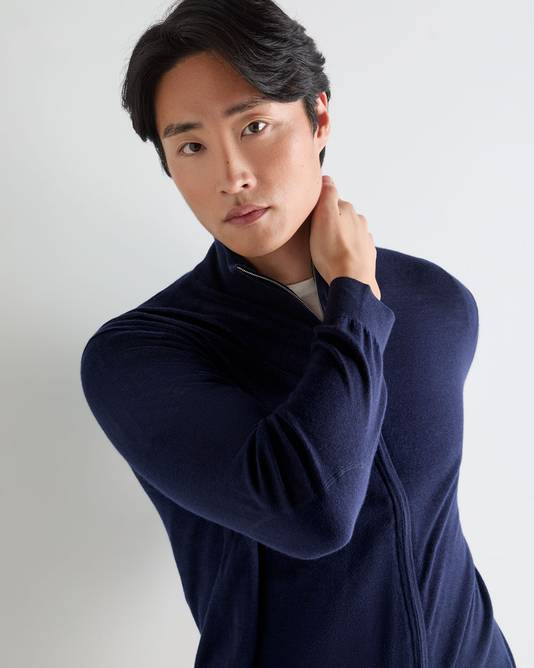 Men's Hyde Fine Gauge Cashmere Full Zip Jumper In Summer Navy Blue