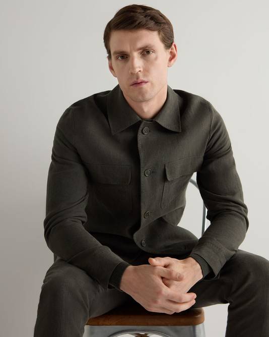 Men's Scala Linen Overshirt In Arabica Khaki Green
