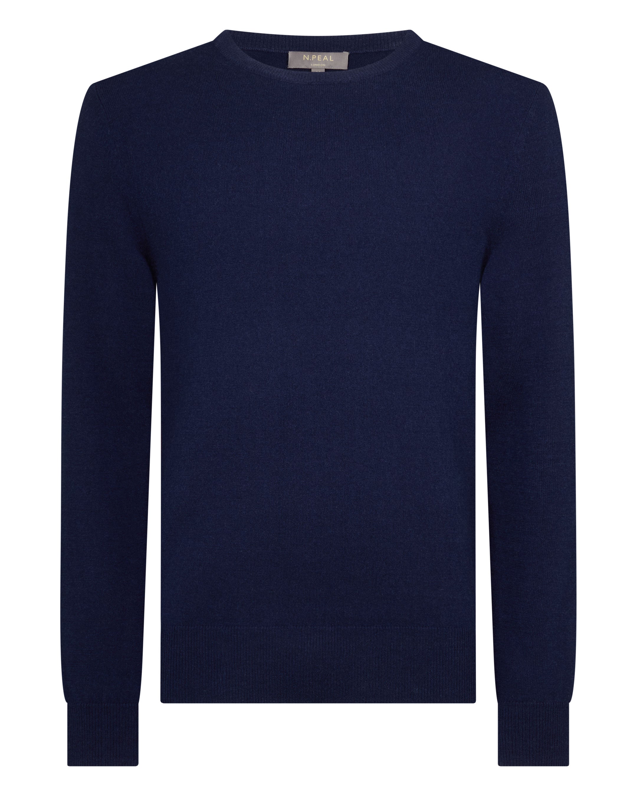Men's Oxford Round Neck Cashmere Jumper In Deep French Blue