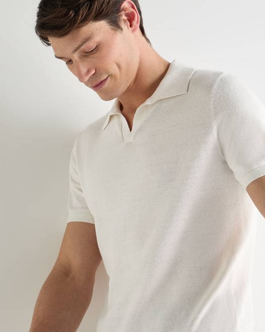 Men's Pique Linen Blend Polo In White