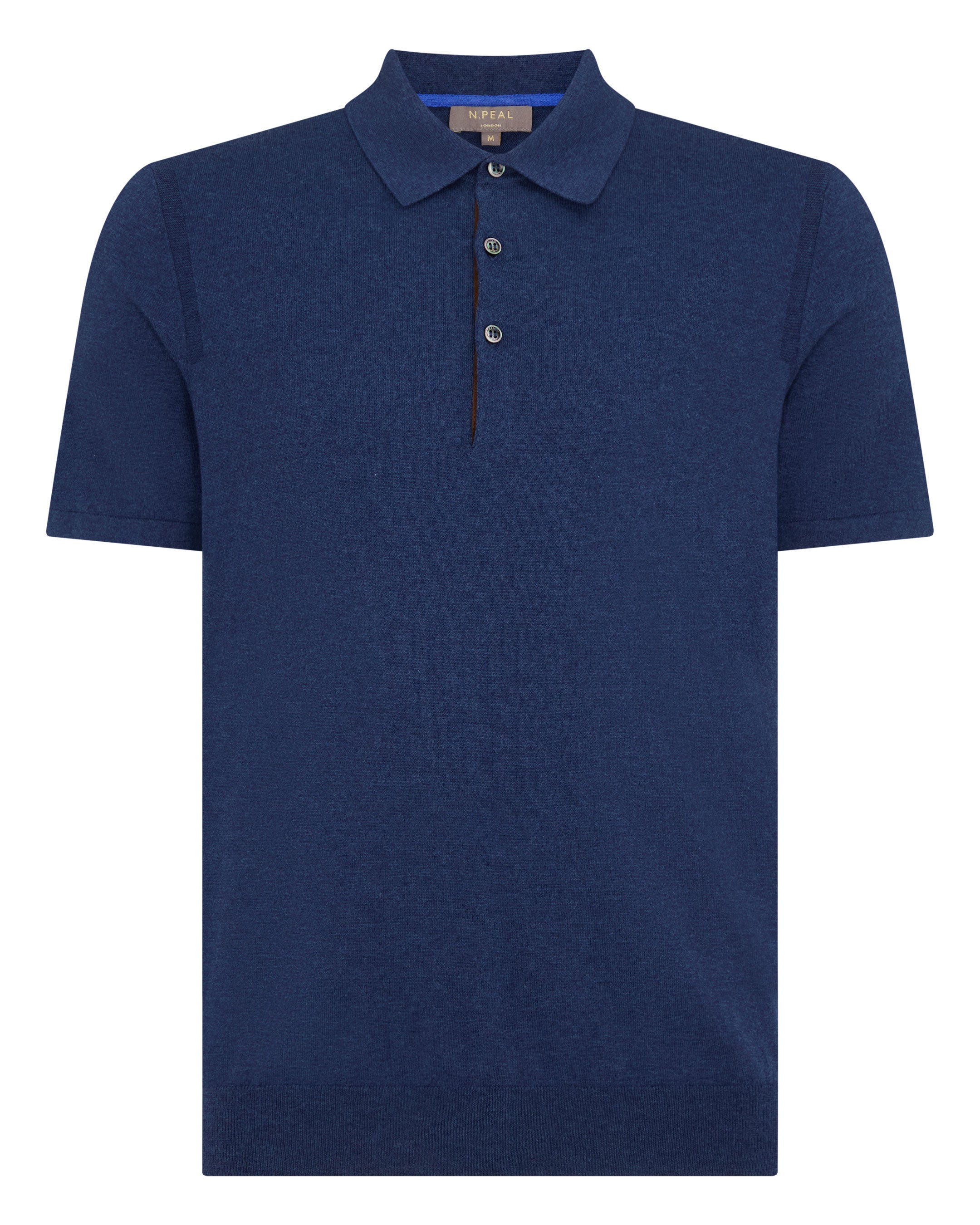 Men's Polzeath Cotton Cashmere Polo T-Shirt In Dark Denim Blue