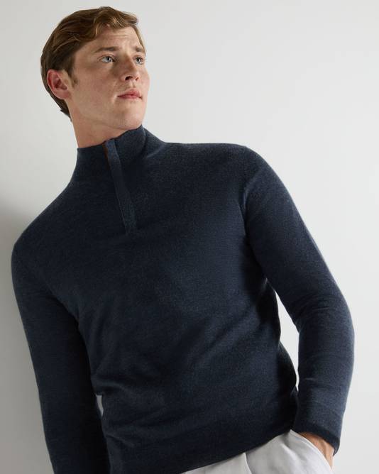 Men's Regent Fine Gauge Cashmere Half Zip Jumper In Indigo Blue