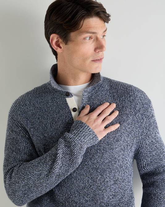 Men's Rib Polo Cotton Blend Jumper In Blue Marl