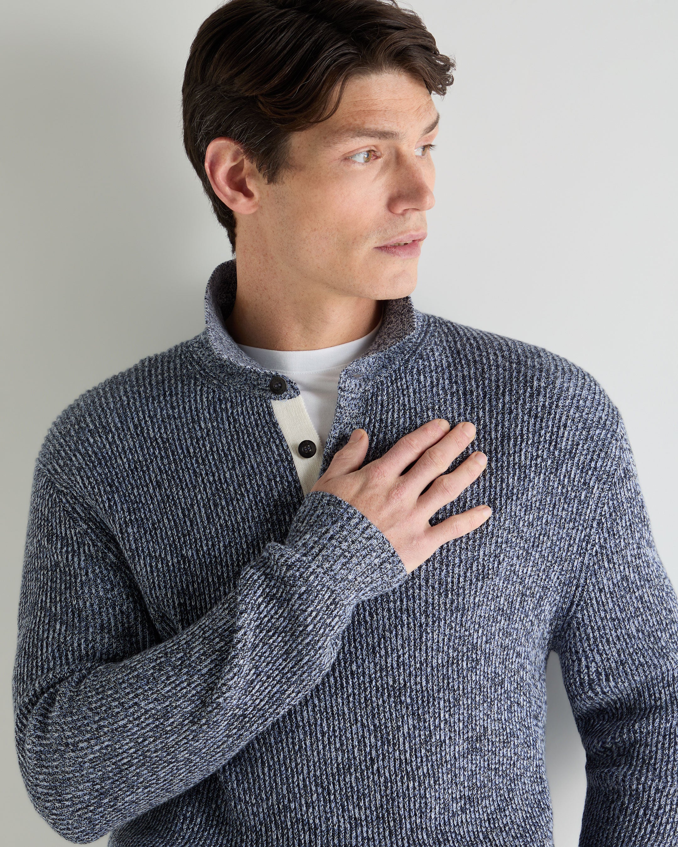 – Crafted from a considered blend of 70% cotton, 20% silk and 10% cashmere, offering breathability with a smooth, elevated handle