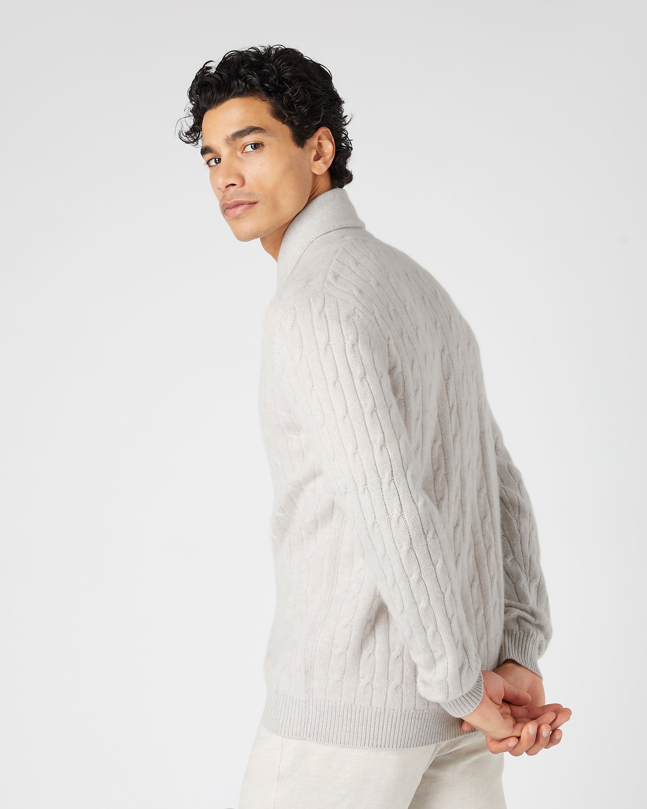 Men's Garrick Shawl Cable Cashmere Cardigan In Pebble Grey
