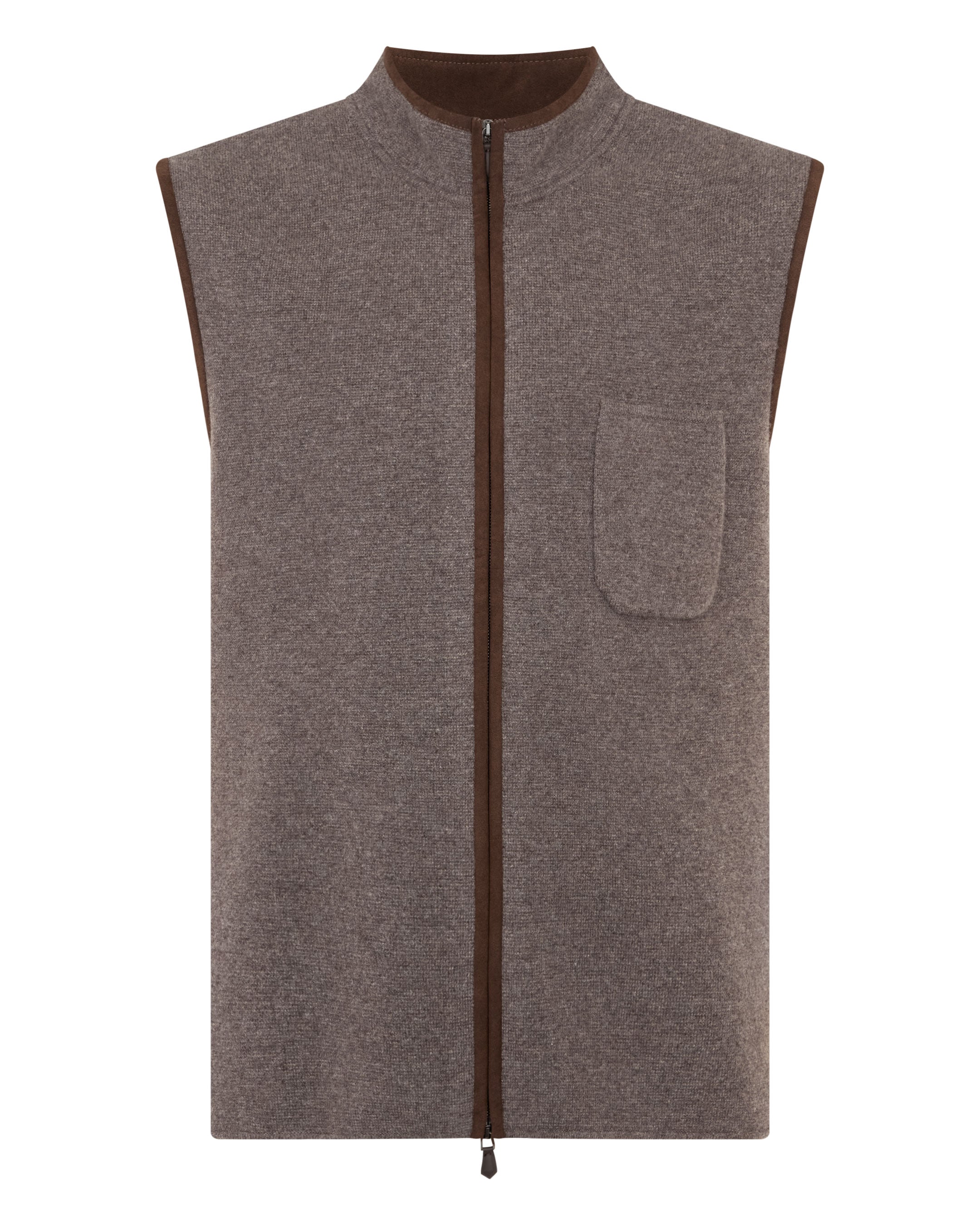 Men's Shaftesbury Suede Trim Cashmere Gilet In Otter Brown