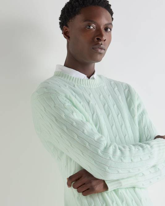 Men's Thames Cable Round Neck Cashmere Jumper In Mint Green