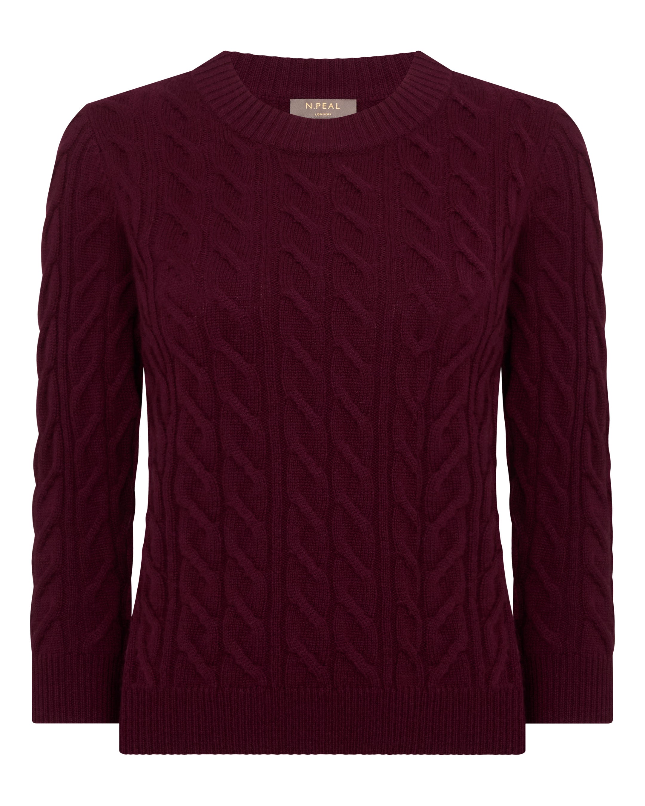 Women's Emilia Cable Round Neck Cashmere Jumper In Bordeaux Red