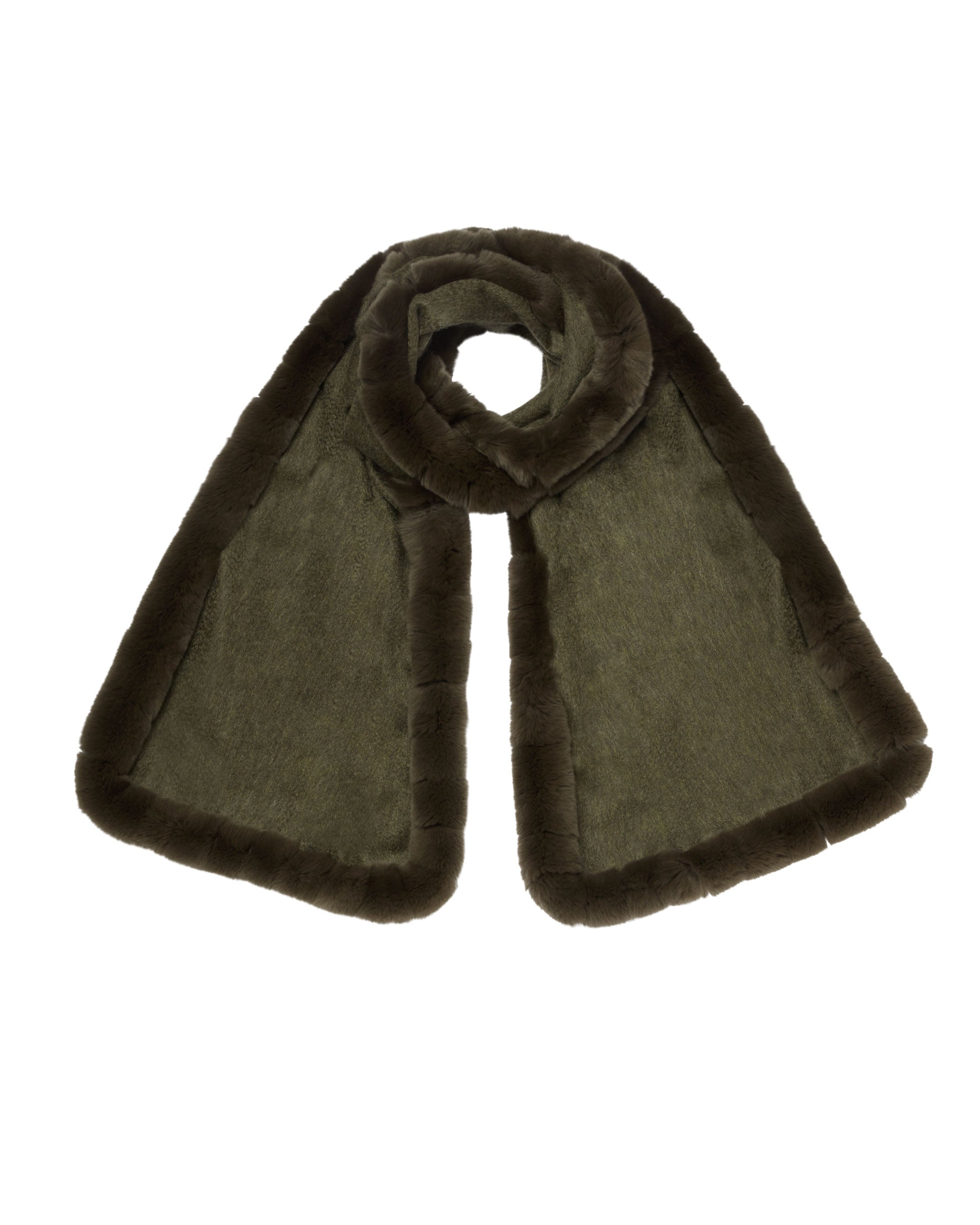 Women's Meribel Woven Fur Trim Scarf In Moss Green