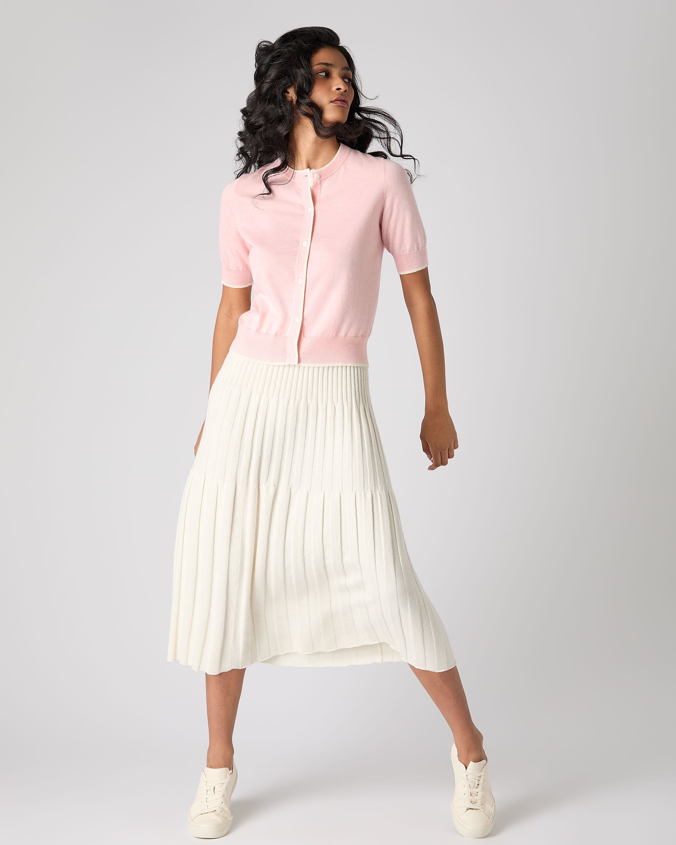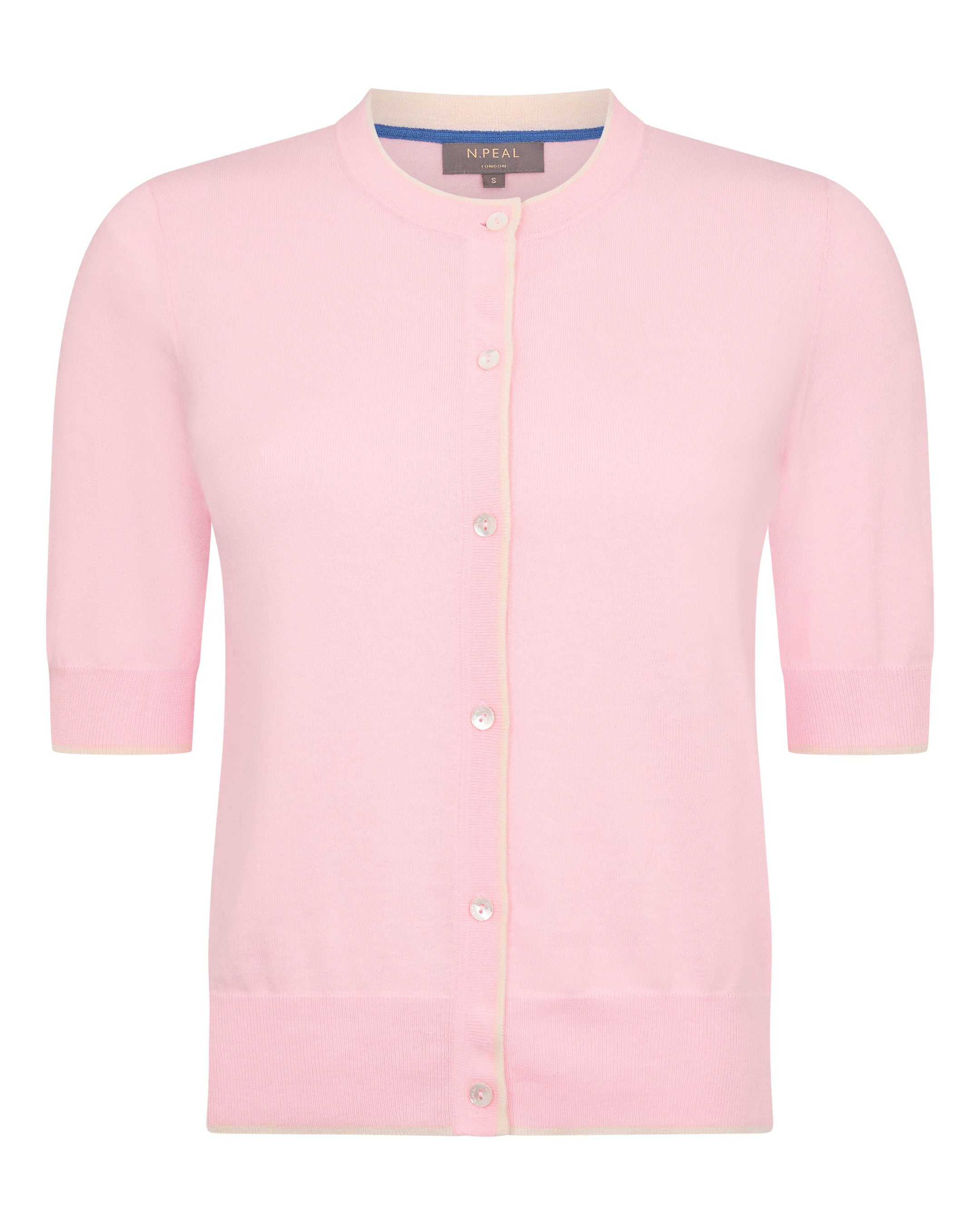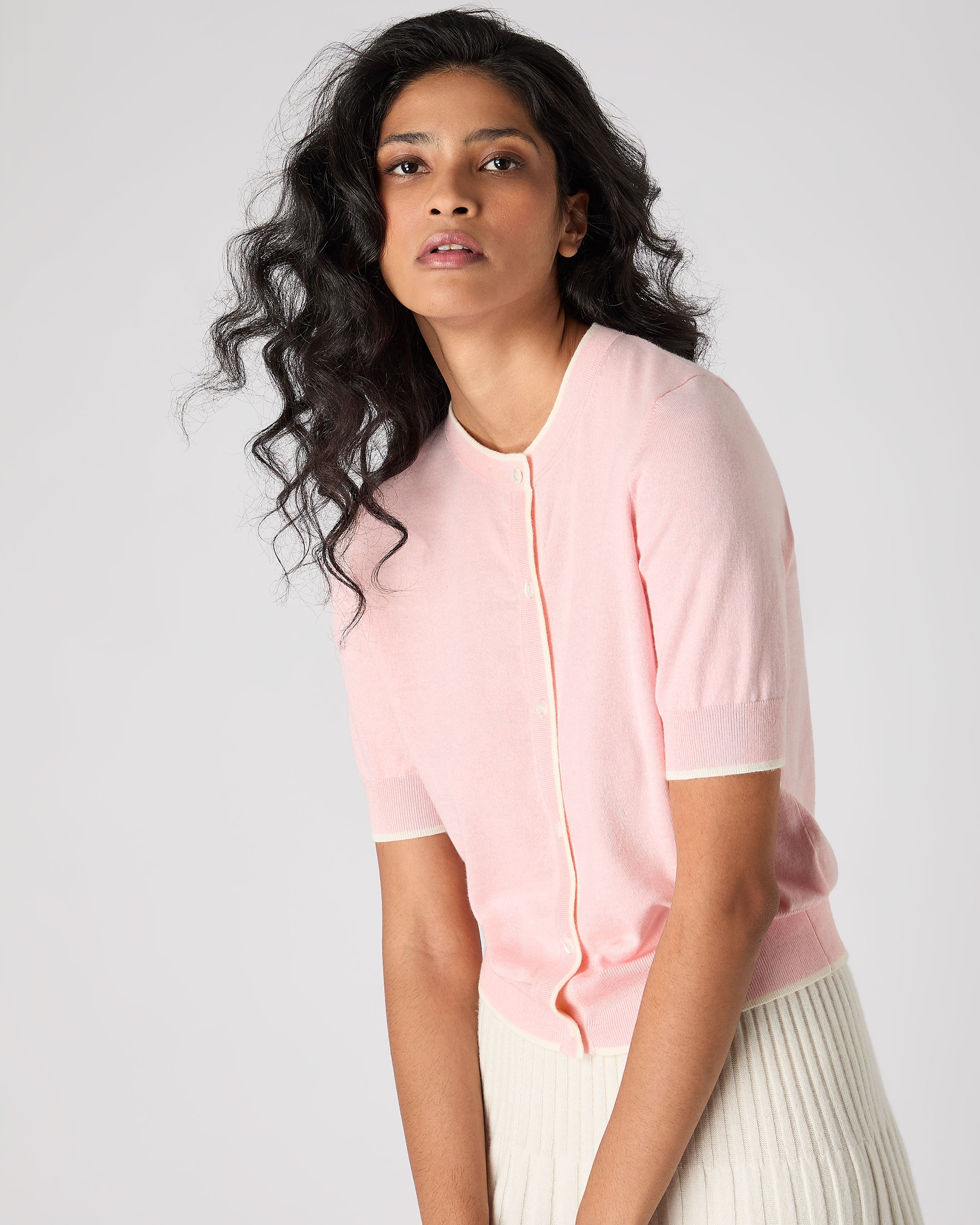 Women's Cotton Cashmere Short Sleeve Cardigan In Spring Pink