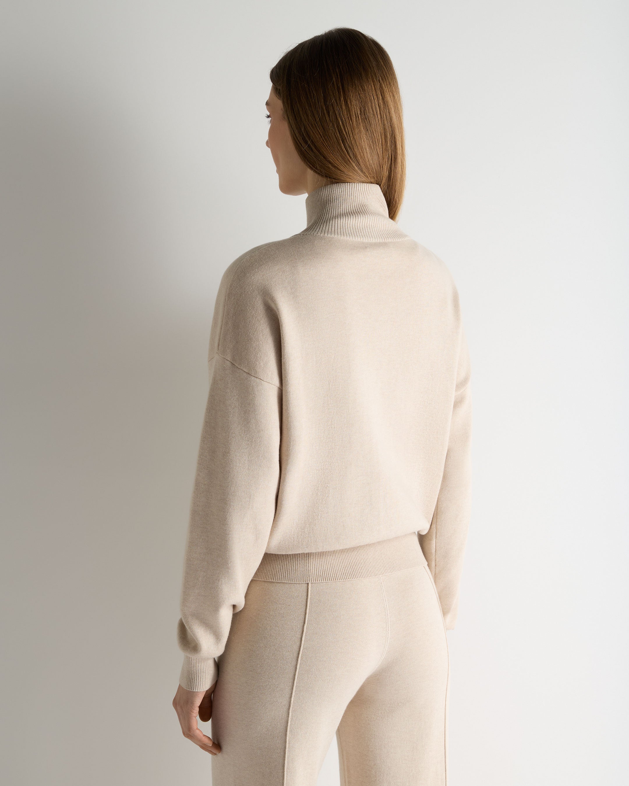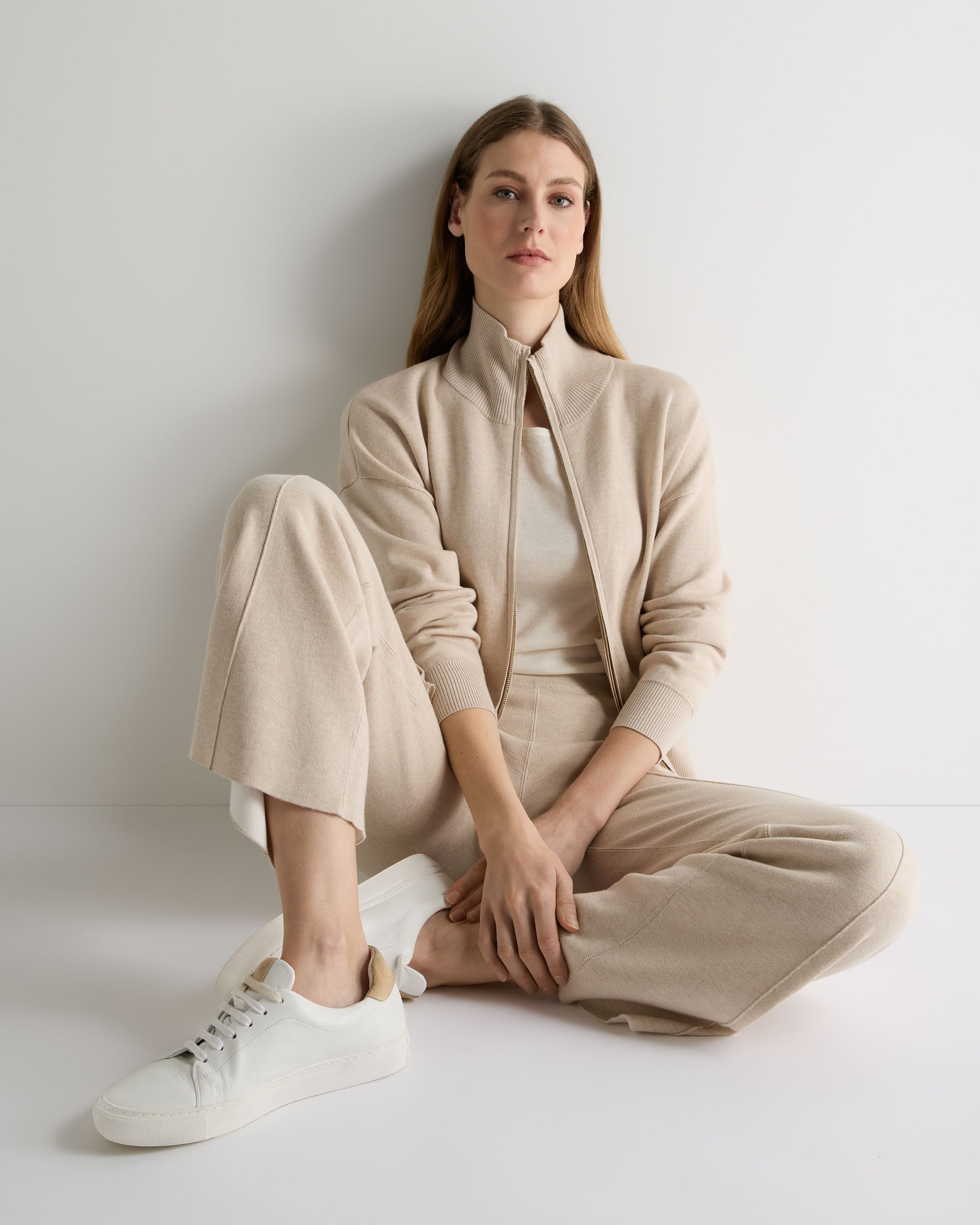 A modern bomber reimagined through knitwear, this double-faced style brings a refined sense of ease to everyday dressing. Clean in silhouette and quietly confident, this is a piece that travels well — equally suited to relaxed mornings, time between destinations and evenings that call for something considered yet comfortable.