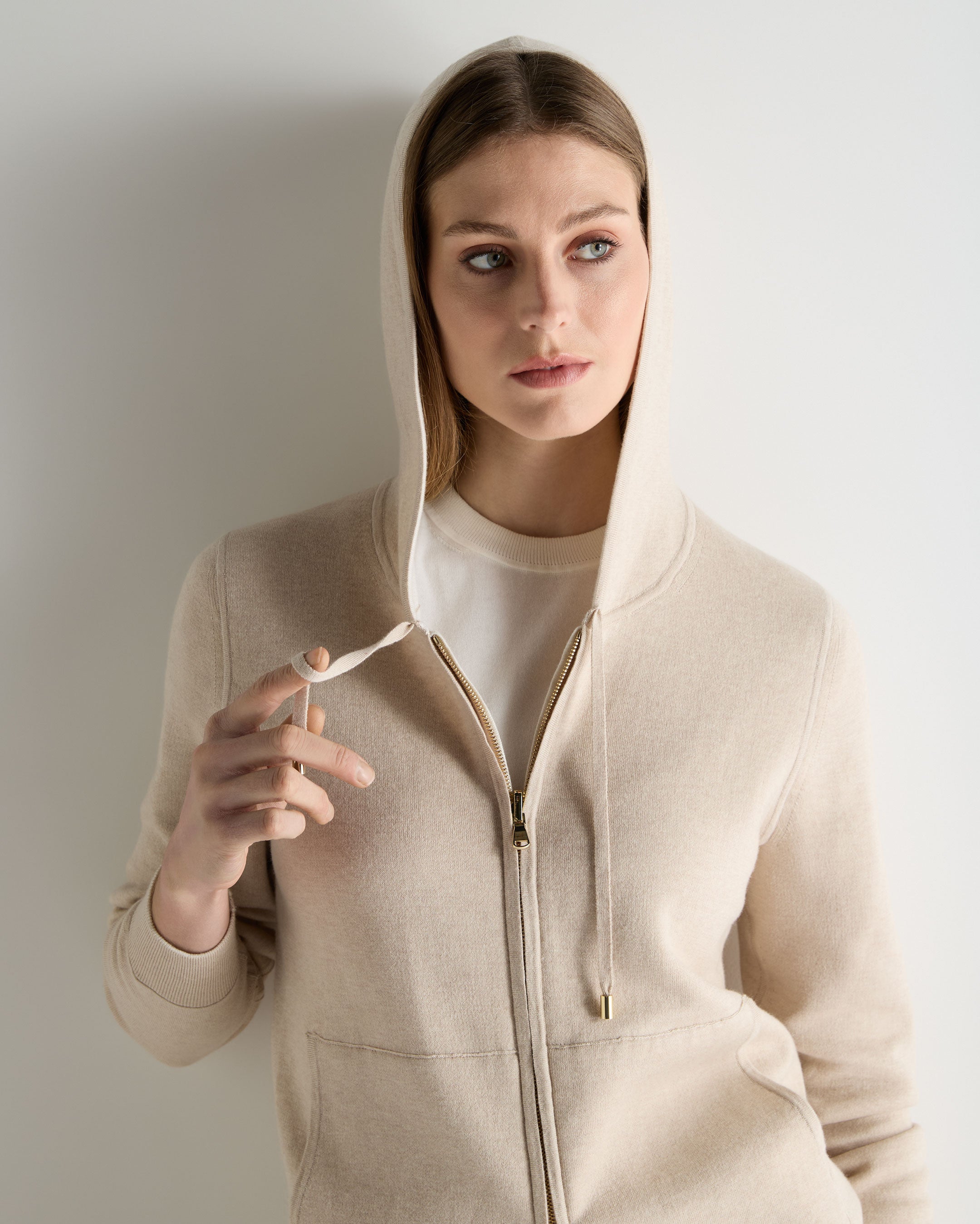 A refined expression of off-duty dressing, designed for travel days, slow mornings and moments of pause between destinations. This reversible, double-face hoodie offers two clean finishes in one, bringing quiet polish to relaxed wear and comfort that feels considered wherever the day unfolds.