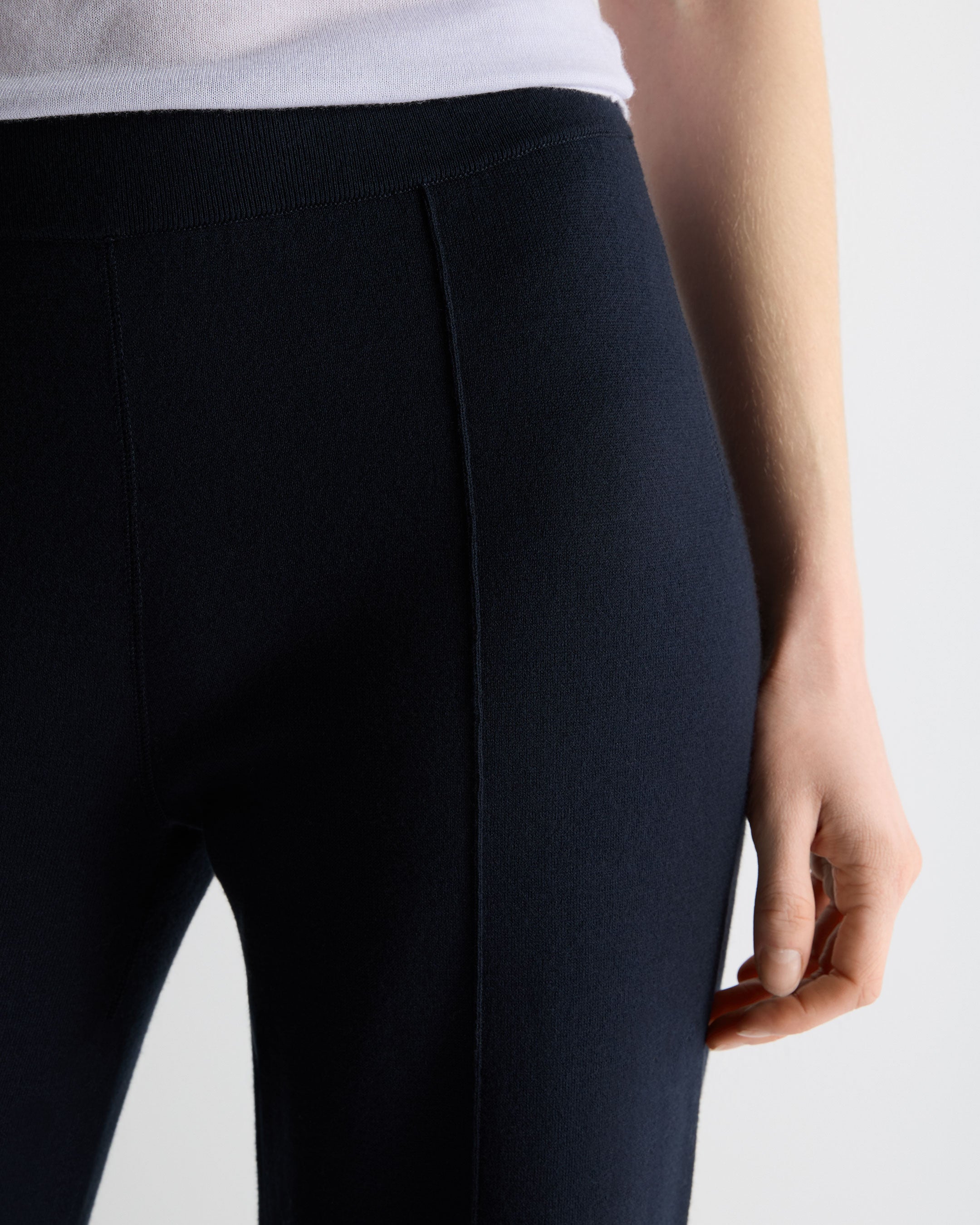 A refined take on relaxed tailoring, these double-faced knit trousers bring effortless elegance to everyday dressing. With a fluid silhouette and a beautifully clean finish, they’re the pair you’ll reach for on polished off-duty days, elevated travel looks or minimalist evening styling.