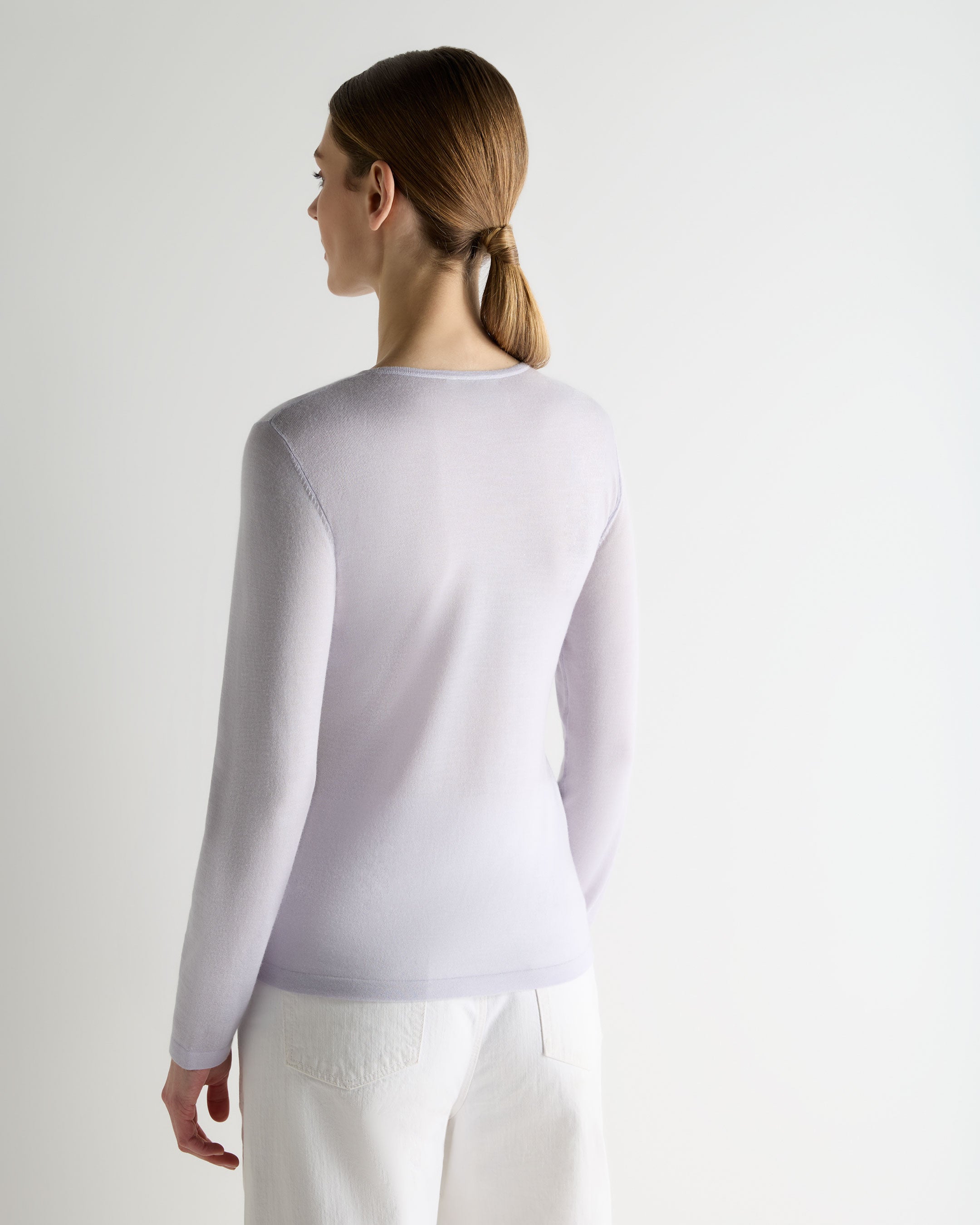 An elevated everyday essential, this superfine cashmere round-neck top brings quiet luxury to any setting — from long travel days to effortless evenings. The lightweight 1-ply knit creates a smooth, refined silhouette that sits beautifully on its own or pairs seamlessly under tailoring and outerwear. Understated, versatile and endlessly wearable, it’s the kind of piece that instantly becomes part of your core wardrobe.