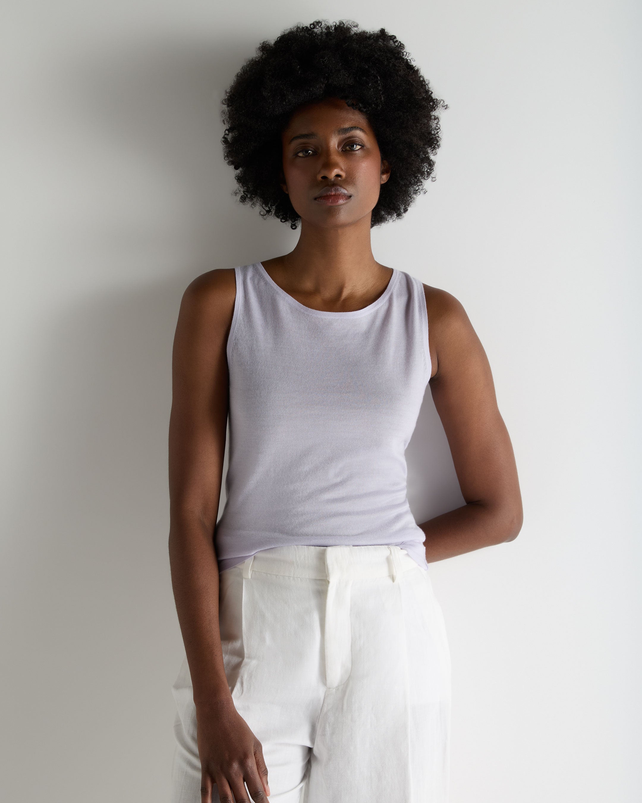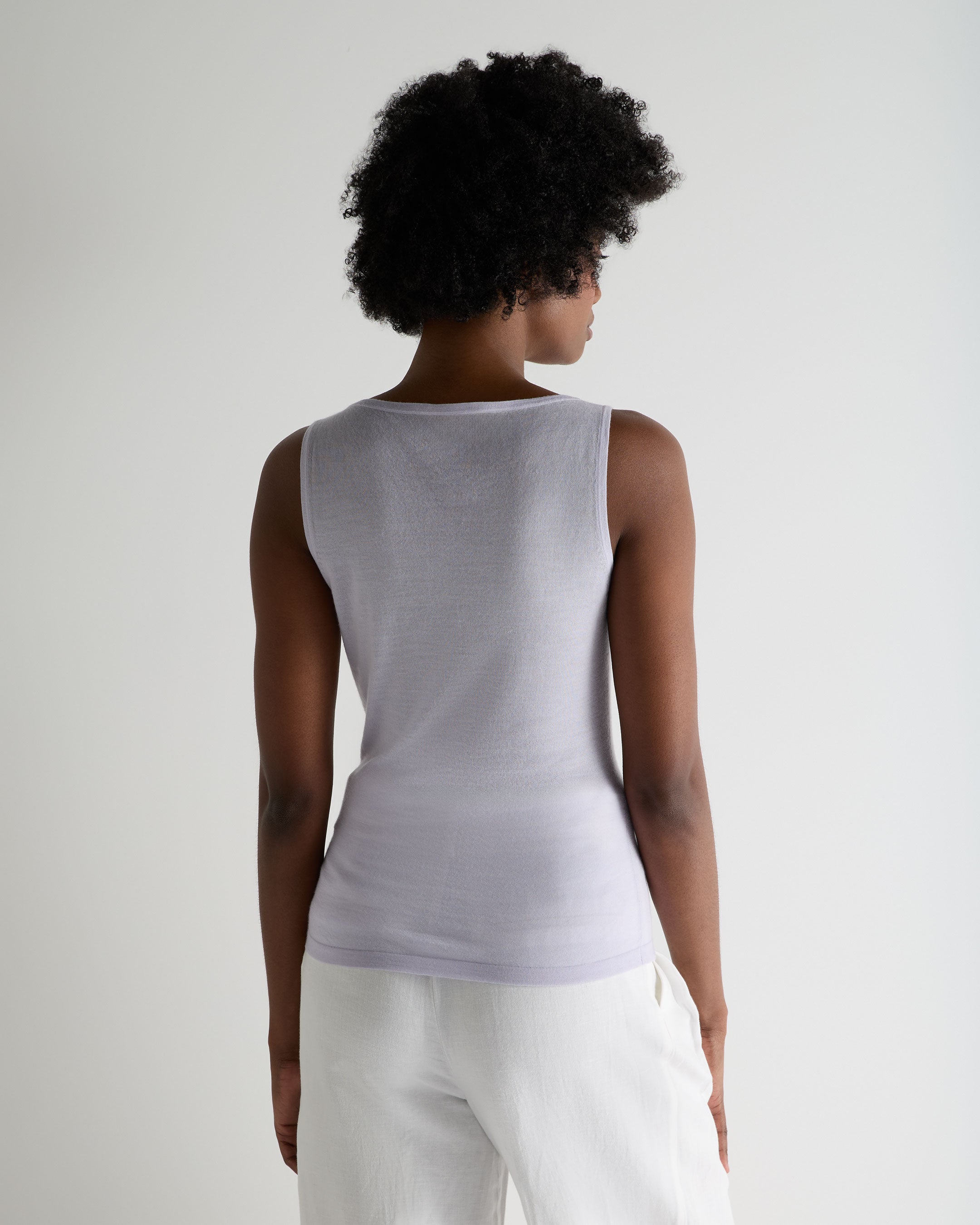 An elevated essential for warm destinations and refined layering, this superfine cashmere shell top offers a sleek, understated elegance that moves effortlessly from day to evening. Its clean, sleeveless silhouette creates a naturally refined line, while the lightweight 1-ply knit delivers a soft, breathable feel ideal for travel, summer dressing or pairing beneath tailoring. Elegant on its own and sophisticated under a jacket, it’s a versatile piece you’ll return to again and again.
