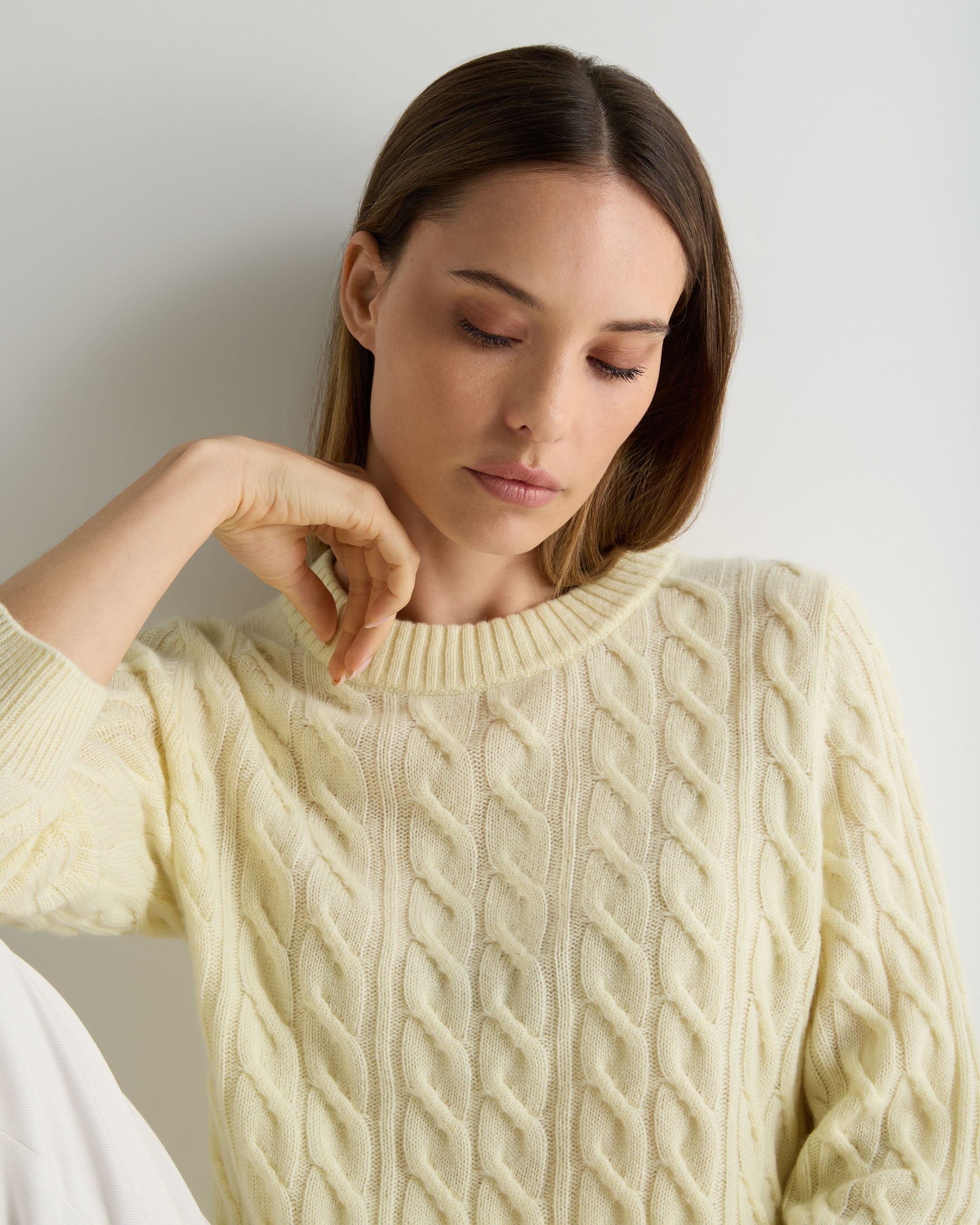 Women's Emilia Cable Round Neck Cashmere Jumper In Butter Yellow