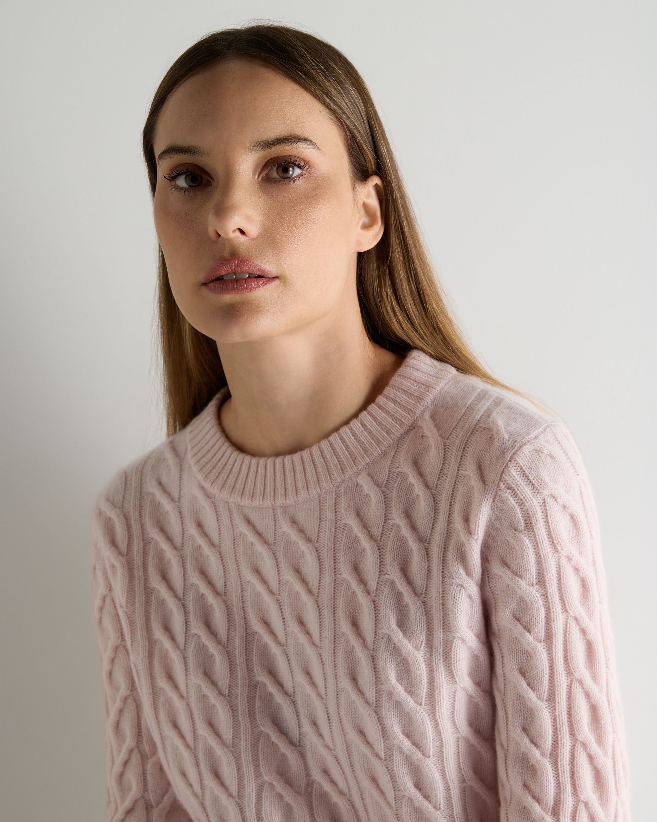 Women's Emilia Cable Round Neck Cashmere Jumper In Powder Pink