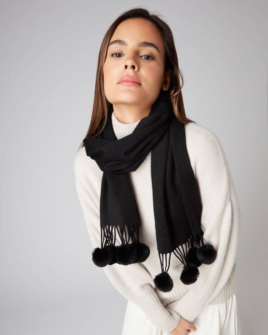 Women's Davos Fur Bobble Cashmere Scarf In Black