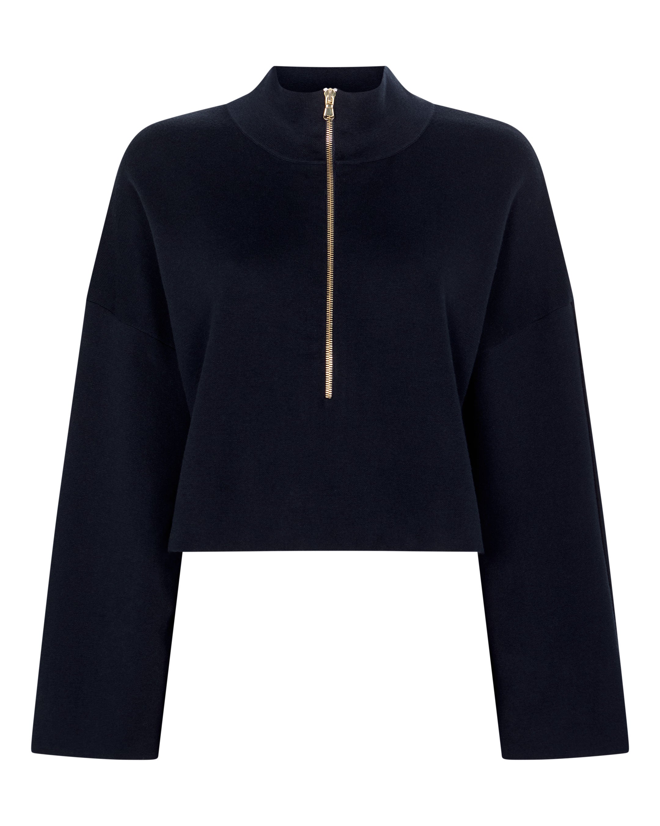 A modern staple with a refined, architectural edge. This half-zip sweatshirt is cut to a clean, cropped silhouette that offers instant polish while still feeling...