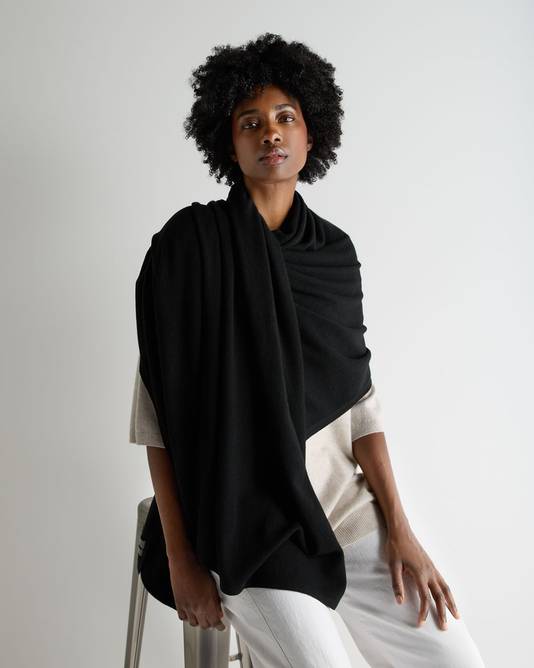 An elegant layer designed for ease and movement, this cashmere shawl brings quiet refinement to everyday dressing. Effortlessly draped and beautifully fluid, it’s the kind of piece you reach for on travel days, cool evenings or when a look calls for a soft finishing touch.