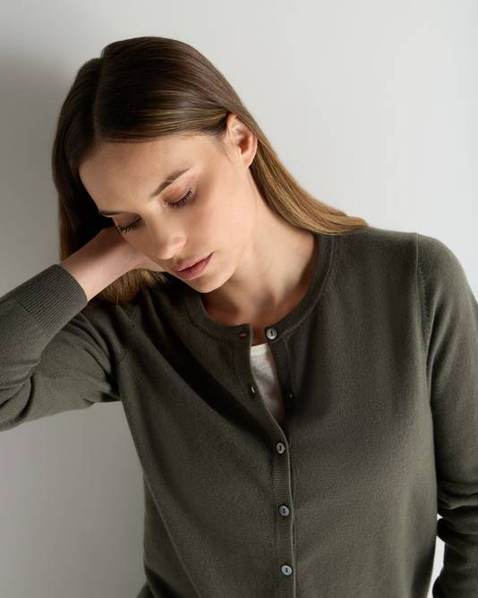Women's Olivia Round Neck Cashmere Cardigan In Olive Green