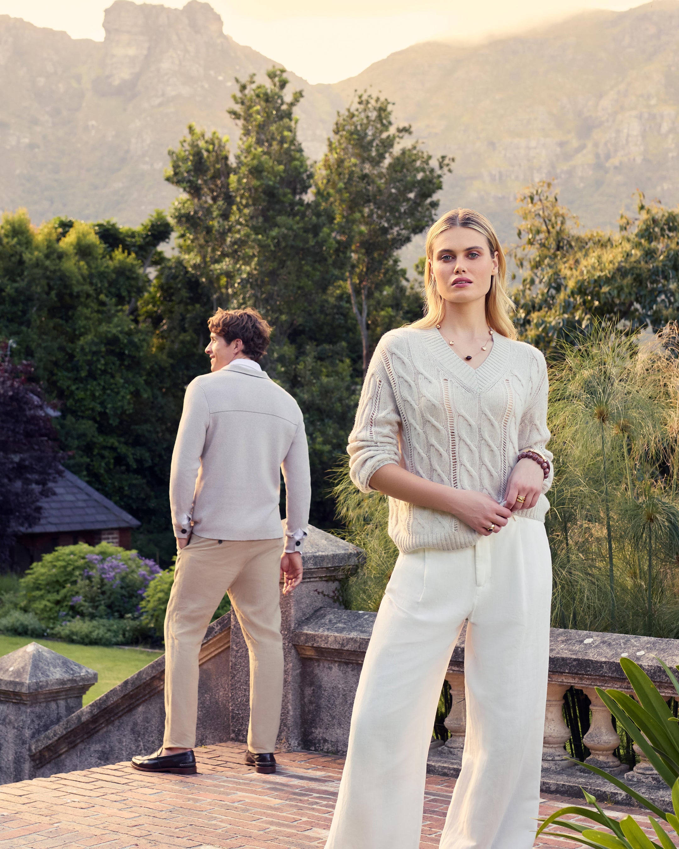 A thoughtfully modern twist on a classic, this open cable V-neck jumper blends relaxed ease with refined texture. Its airy patterning and soft drape make it a beautiful choice for transitional days — ideal for coastal walks, slow weekends or layering over dresses and shirts with effortless elegance.