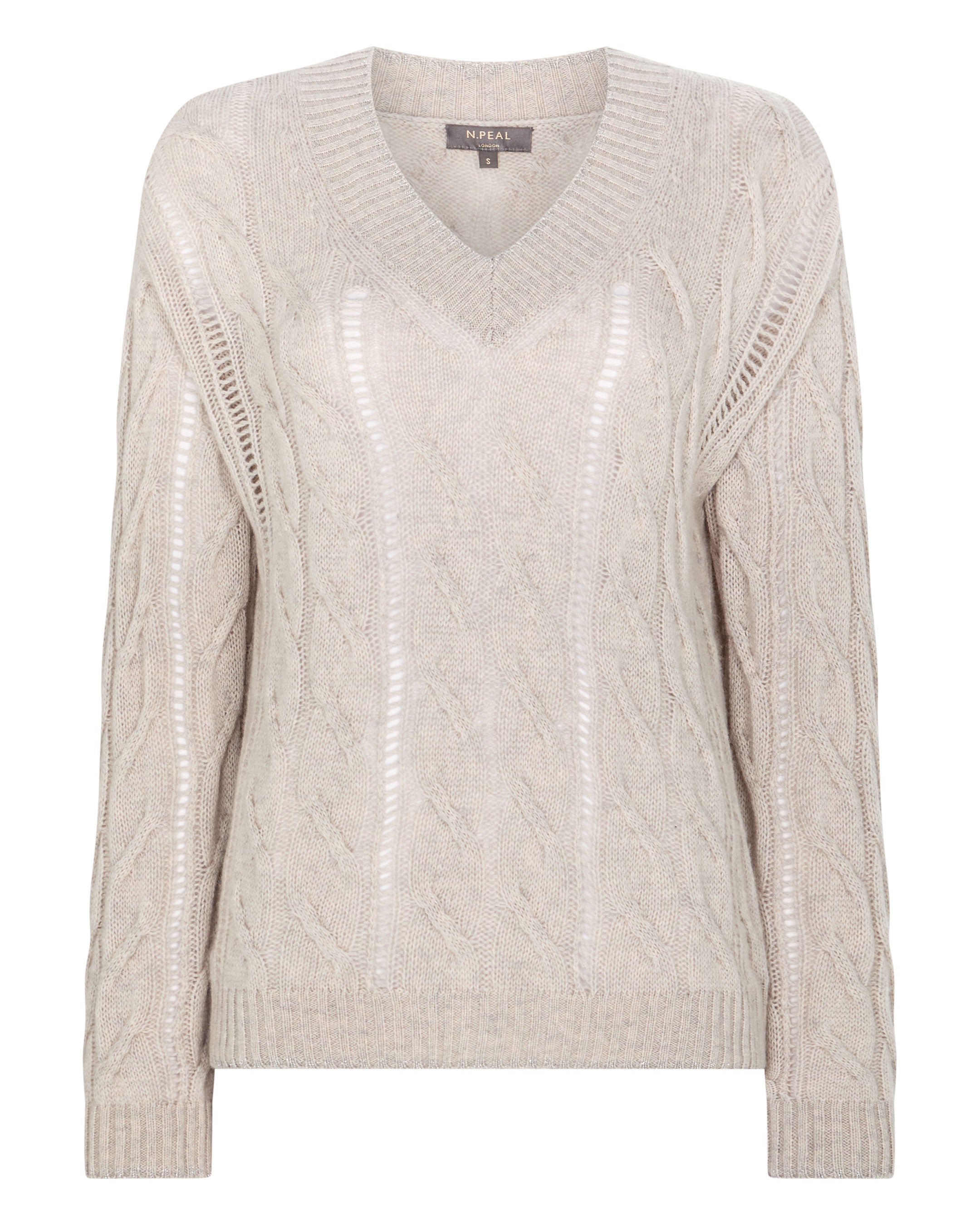 Women's Open Cable V Neck Cashmere Jumper In Pebble Grey