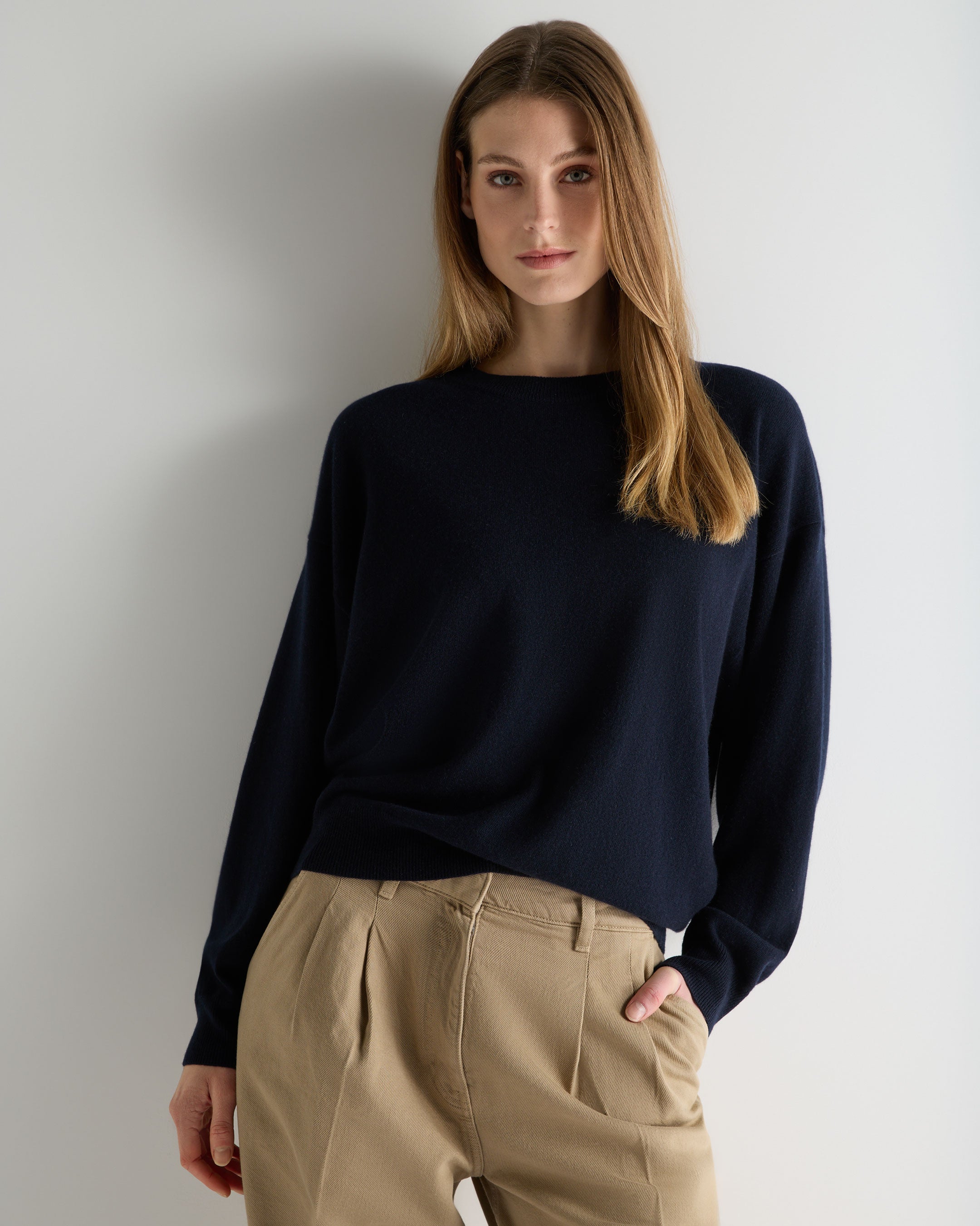 Women's Oversized Round Neck Cashmere Jumper In Navy Blue