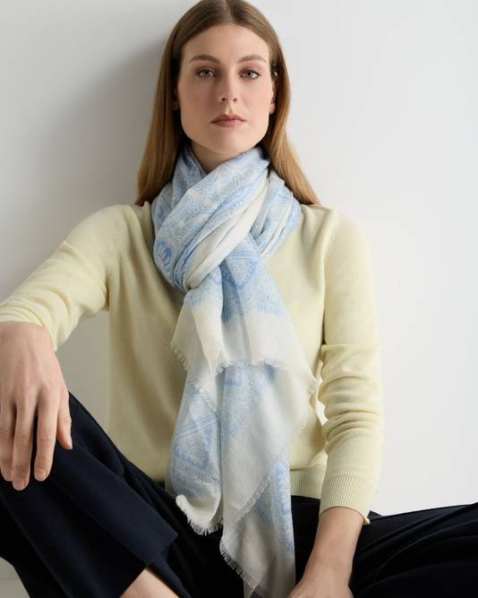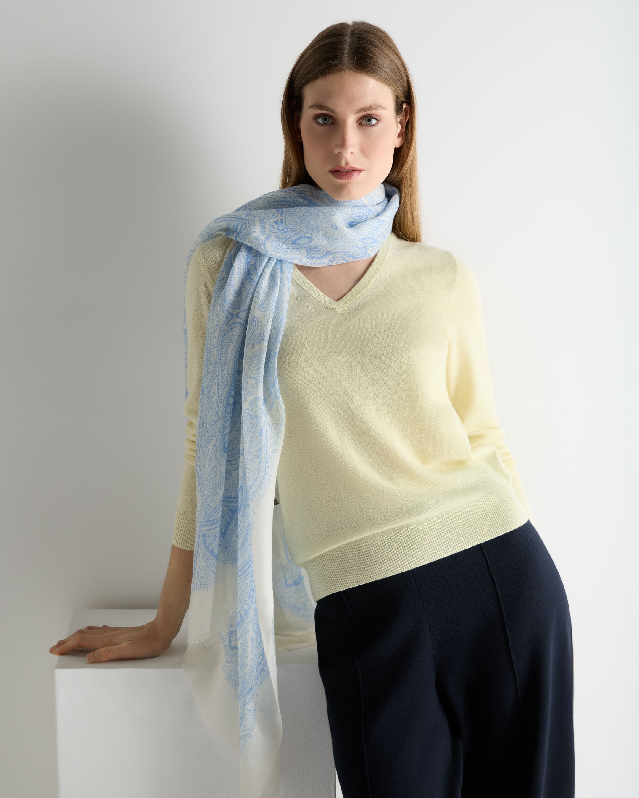 A refined travel companion with timeless appeal, this paisley pashmina is designed to move effortlessly with you. Woven from pure cashmere, it offers generous warmth...