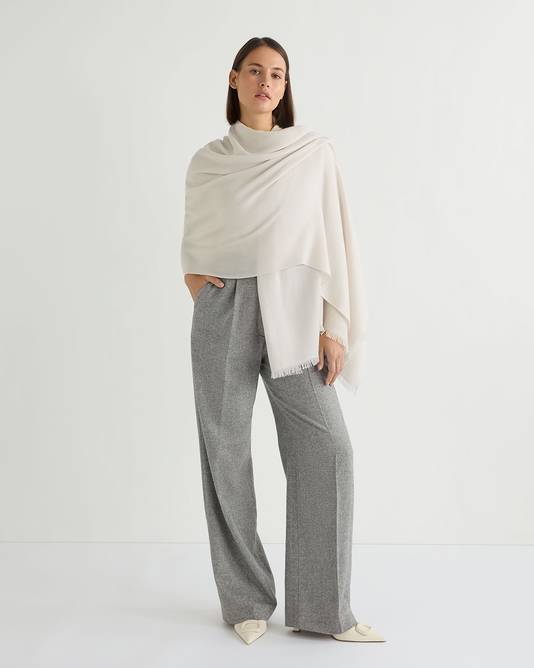 N.Peal's world famous cashmere woven pashmina shawl, stylish and beautiful to wear.