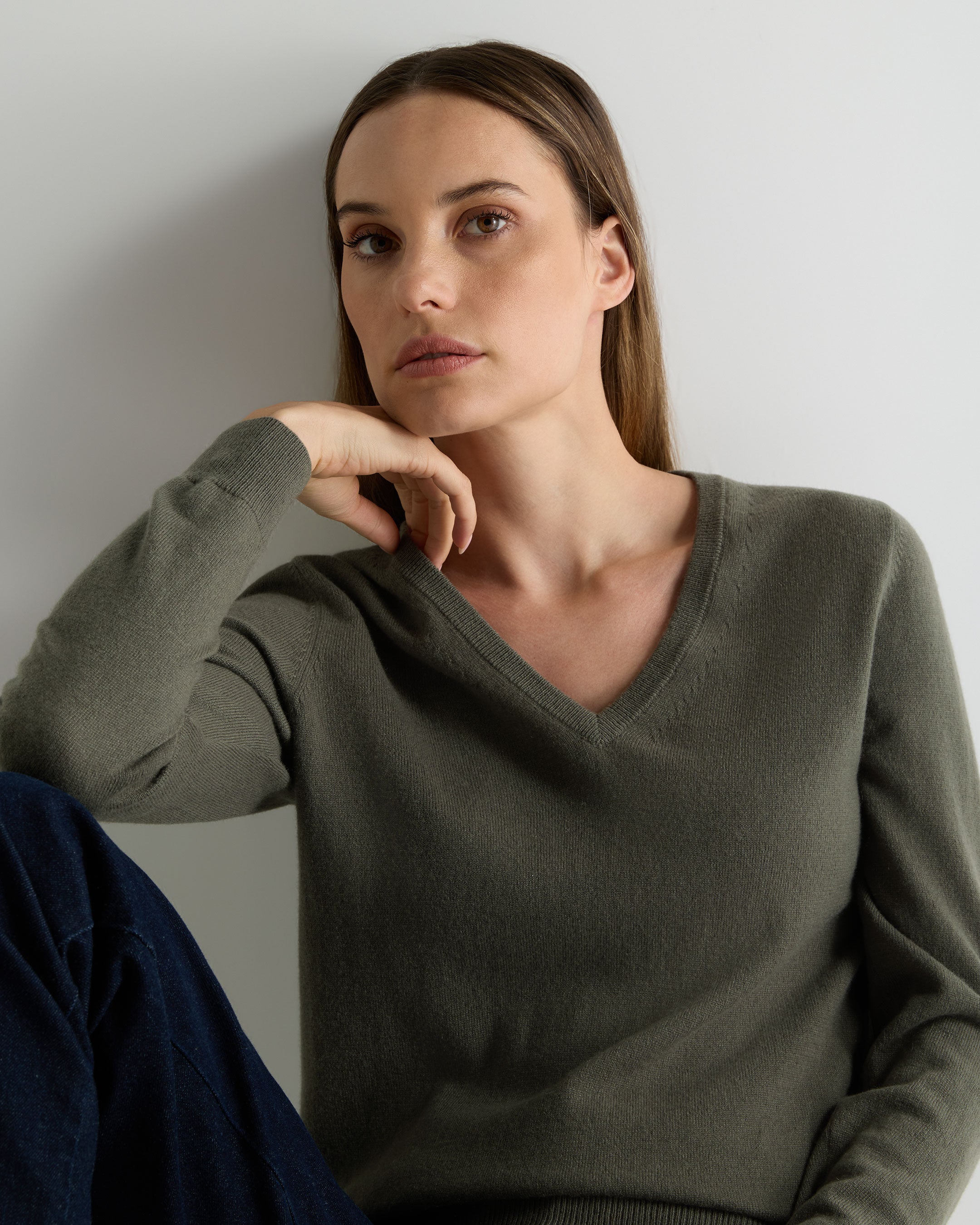 Women's Phoebe V Neck Cashmere Jumper In Olive Green