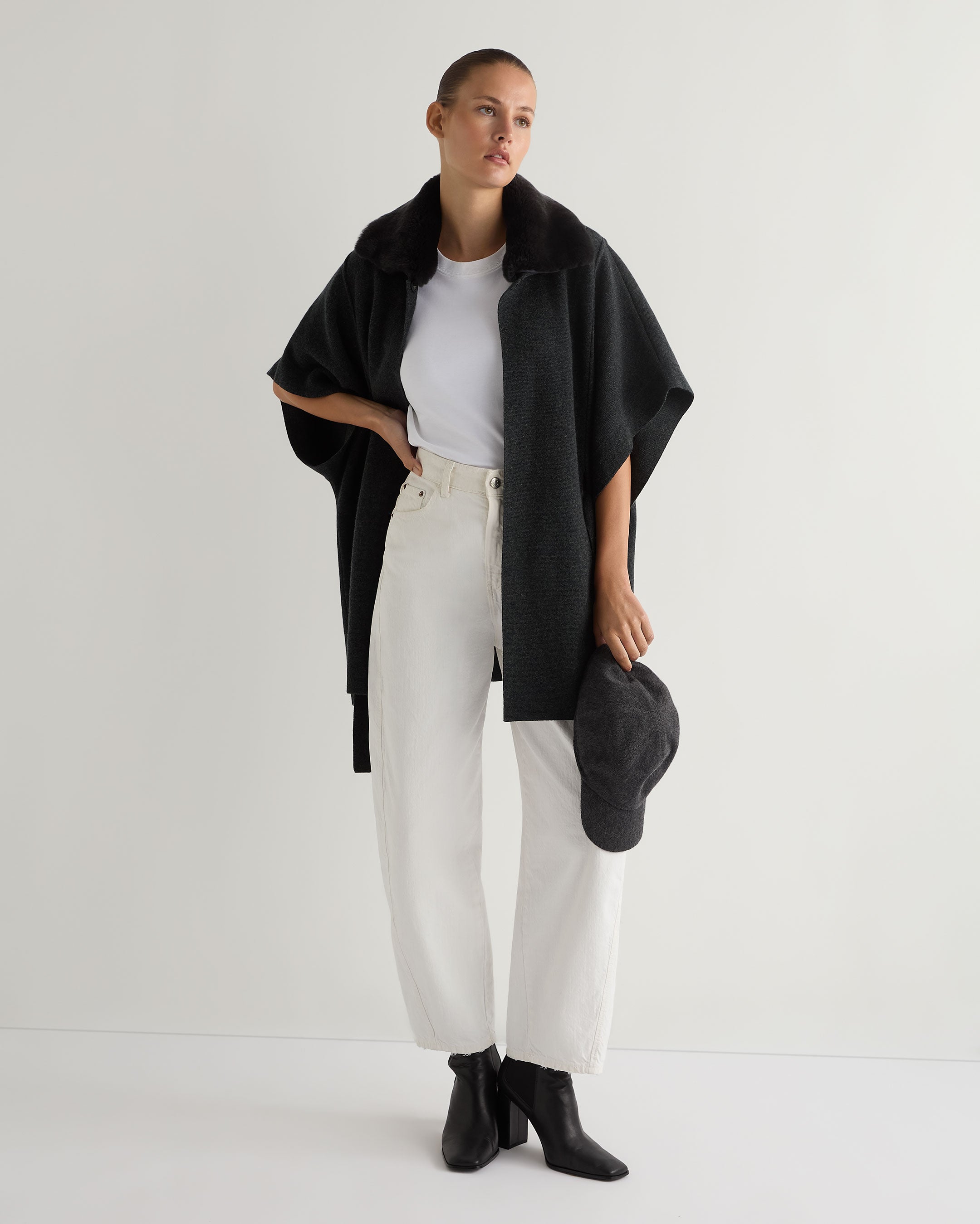 - Featuring a luxuriously soft dark grey Rex fur collar that will keep you snug yet stylish