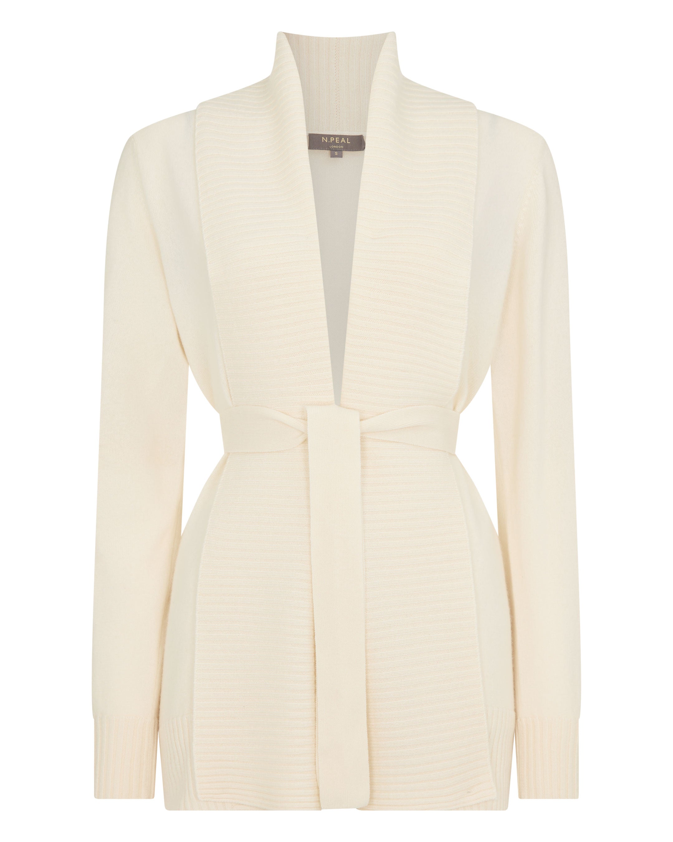 Women's Rib Placket Cashmere Cardigan In New Ivory White