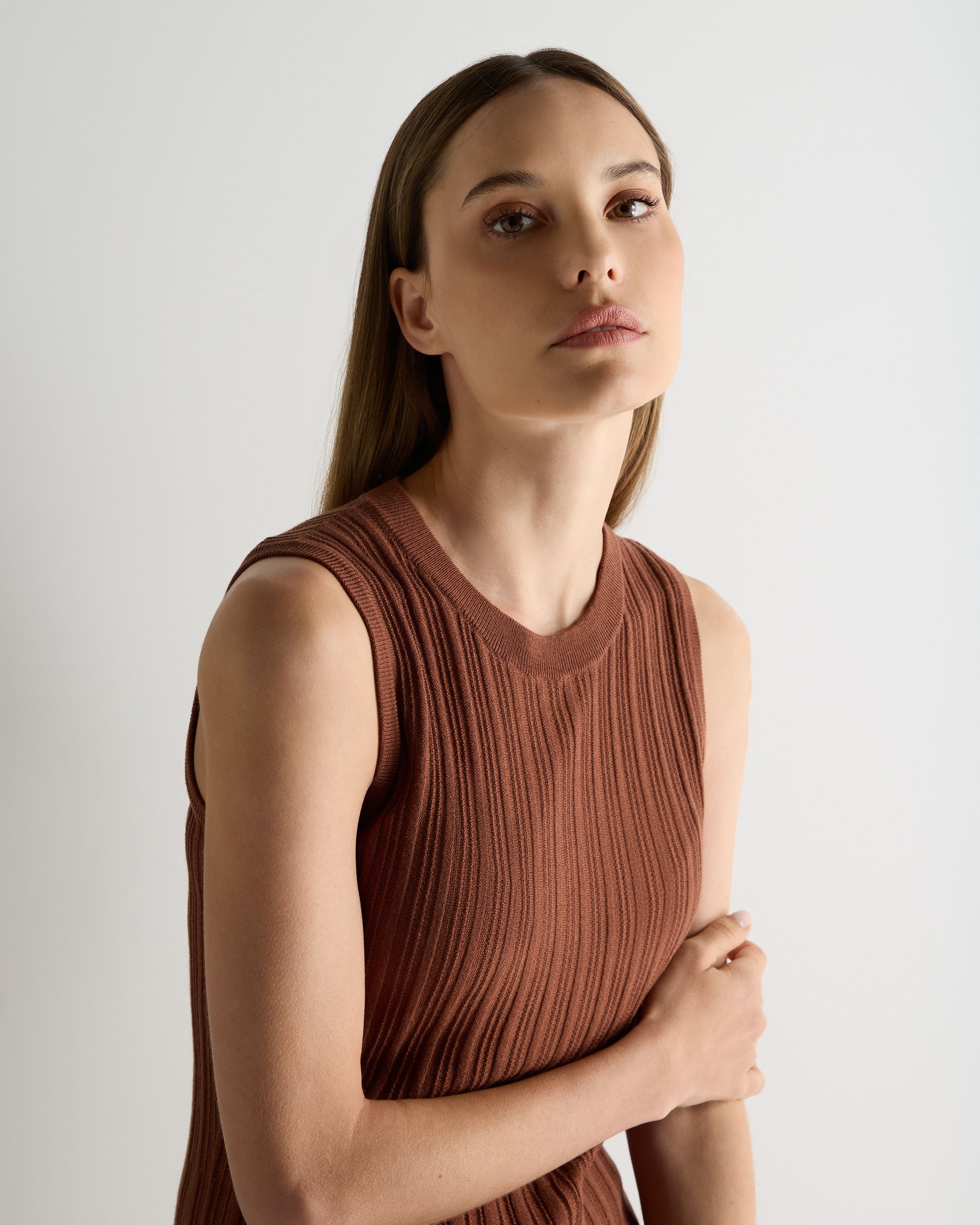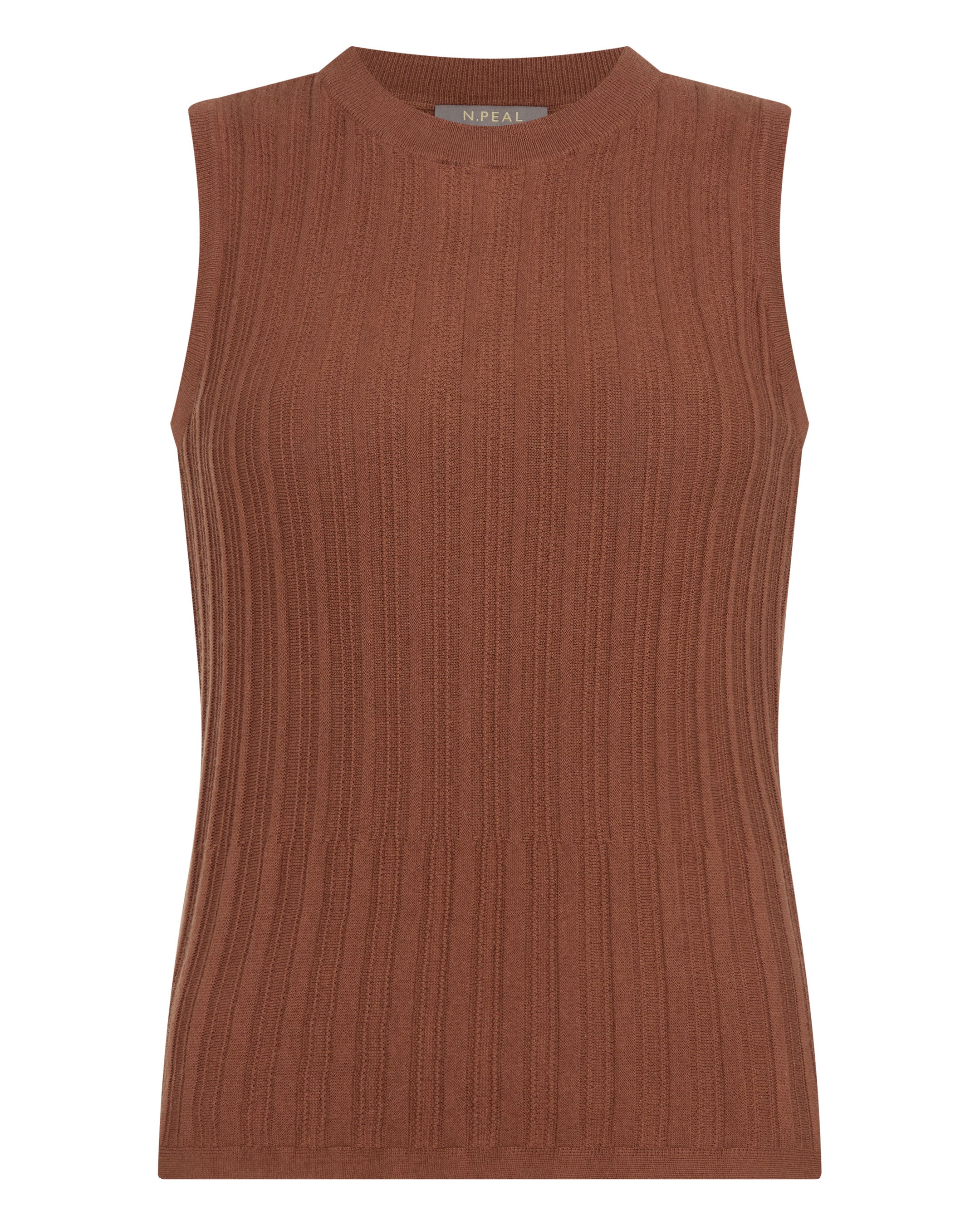 Women's Rib Silk Cashmere Tank Top In Henna Brown