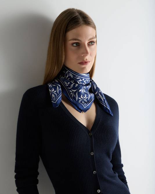 A refined finishing piece designed to elevate everyday dressing, this silk scarf brings quiet confidence and considered detail to any look. Whether tied neatly at the neck, worn loose with knitwear or styled beneath outerwear, it offers effortless versatility with an unmistakably polished feel.