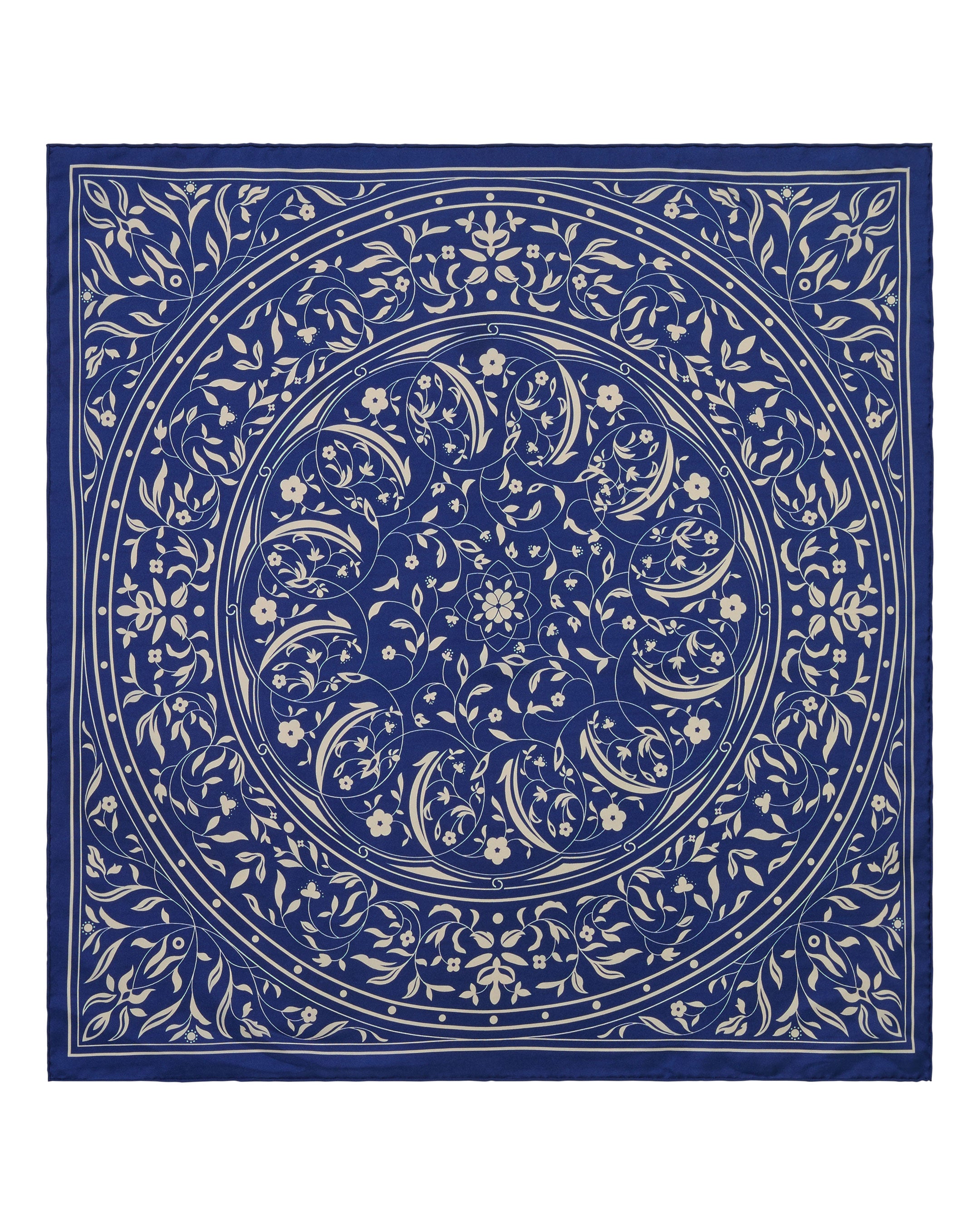 – Cut in a classic square foulard shape for versatile styling at the neck, hair or attached to a bag
