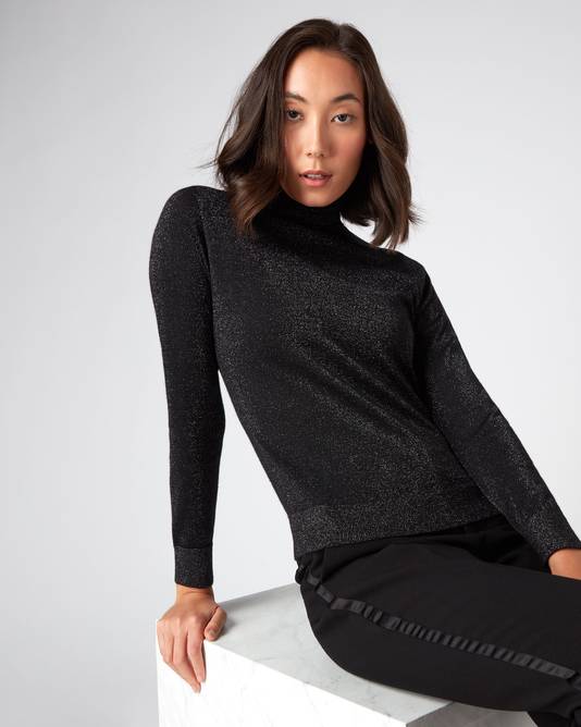 Women's Margot Superfine Cashmere Roll Neck Jumper In Black Sparkle