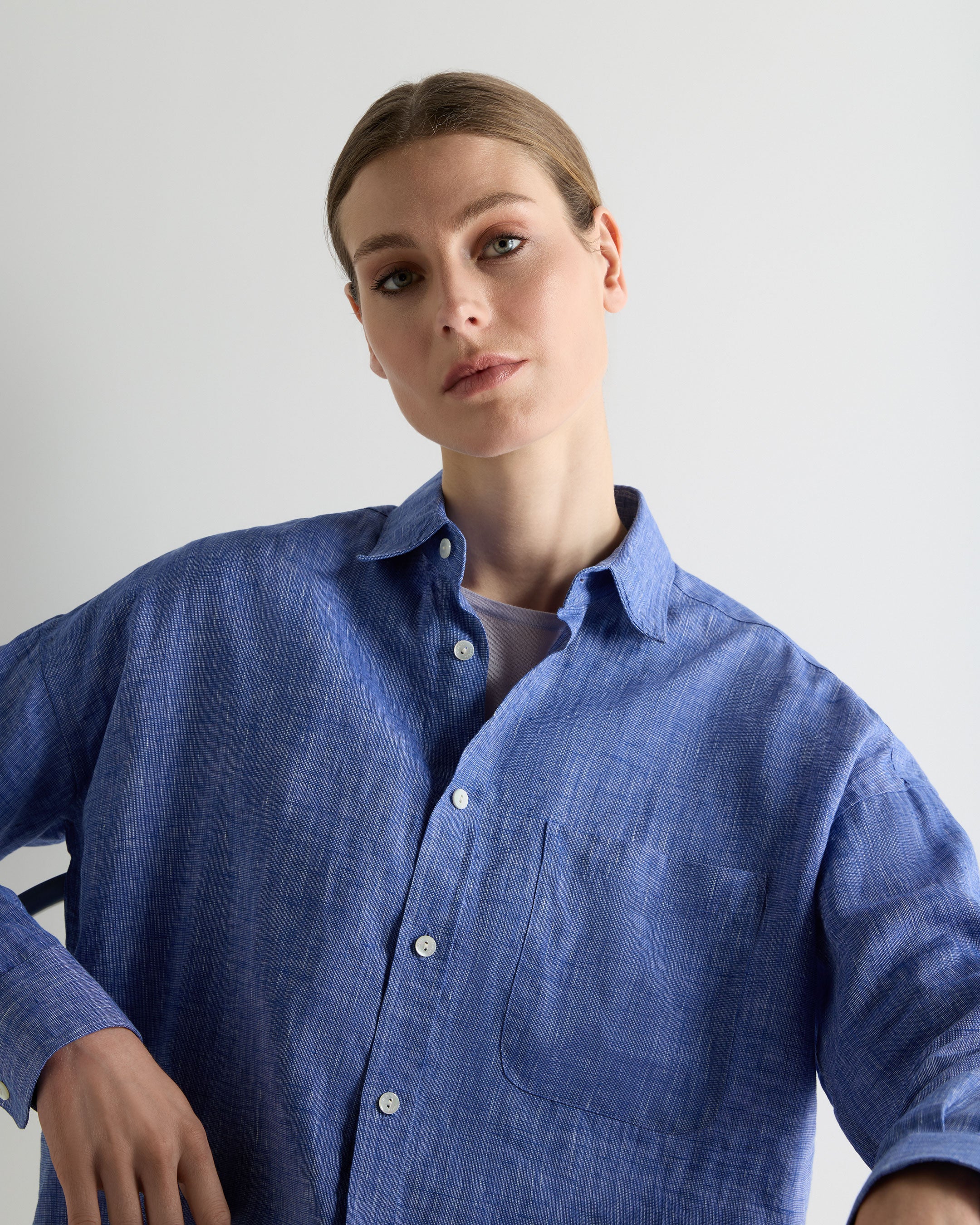 An effortless staple designed for sun-filled days and unhurried travel. This linen shirt brings a relaxed elegance to warm-weather dressing, equally at ease by the coast or strolling through city streets abroad.